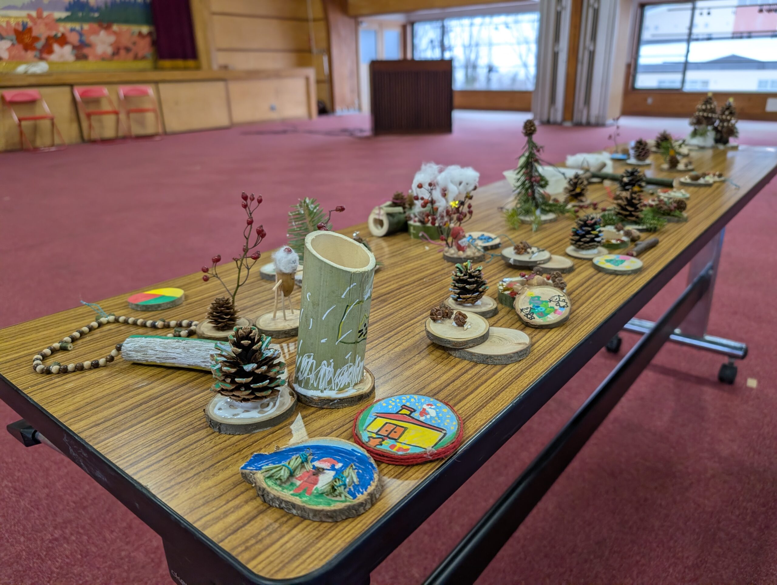 出来上がった作品がずらり。ツリーに掛けられるものや、置き物飾りなど様々。
