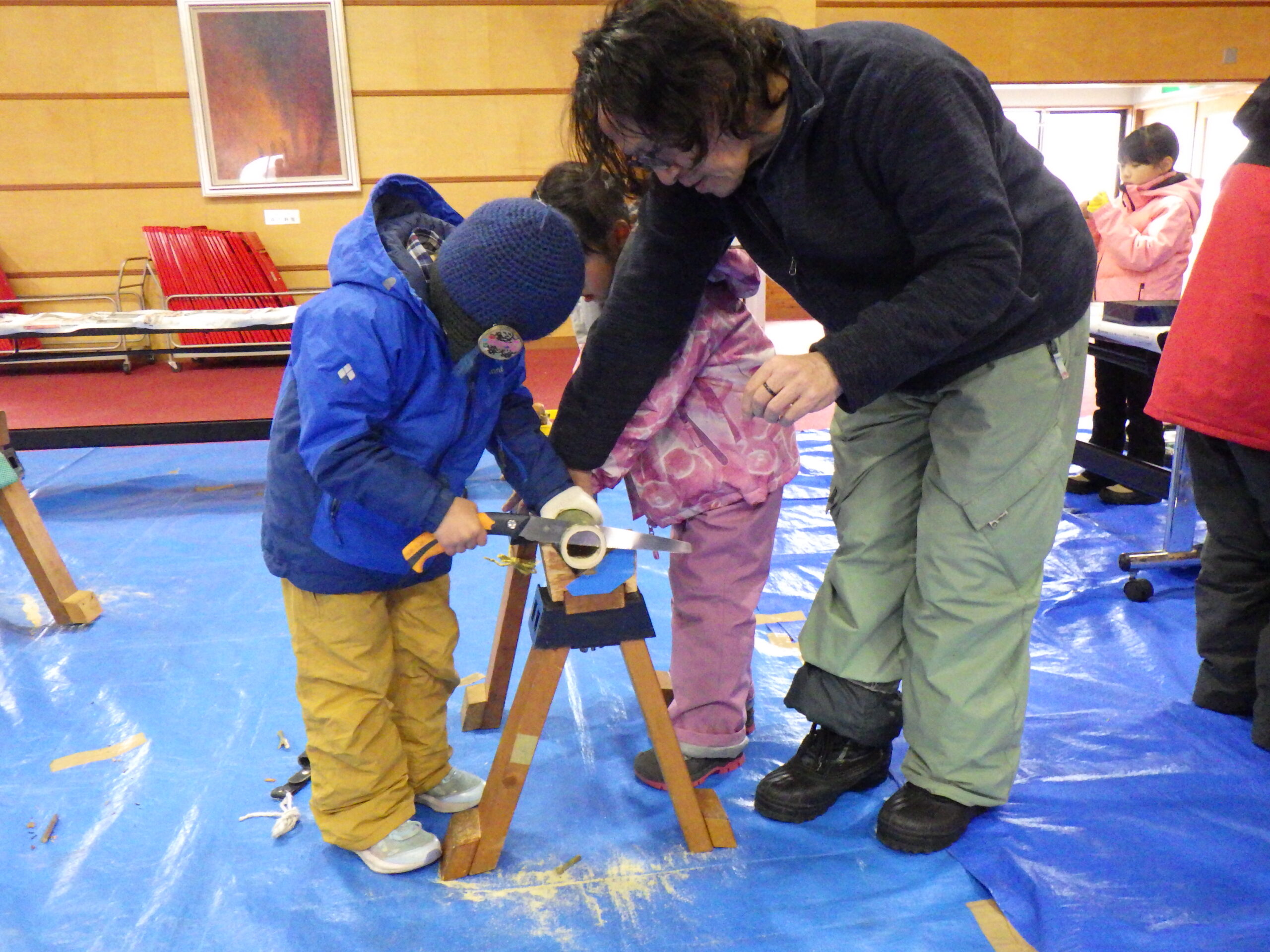 残念ながら焼きリンゴはできず、外では雪あそびを楽しむことにしました。