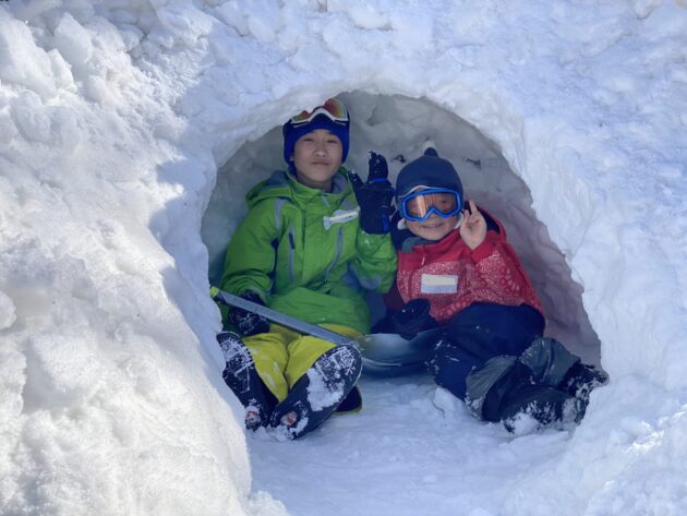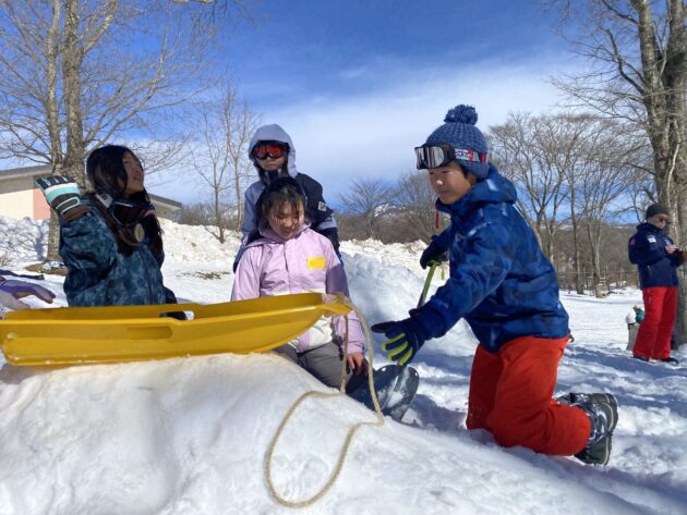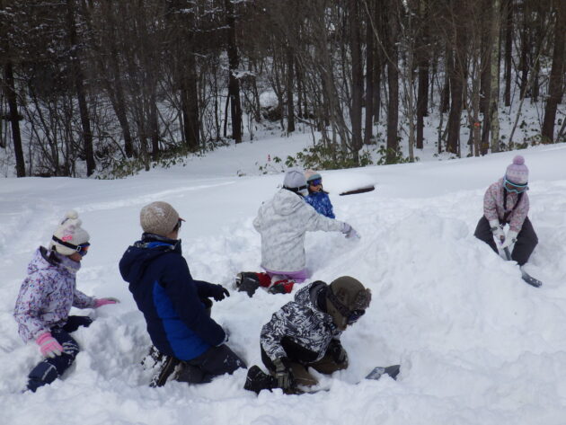 たっぷりの雪を使って、かまくらづくりも大盛況。