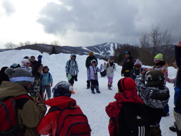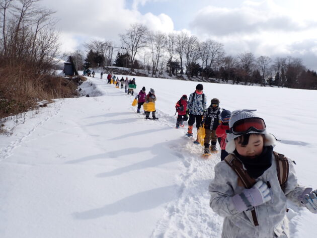 集合場所から体験の森へはスノーシューをはいて、移動しました。