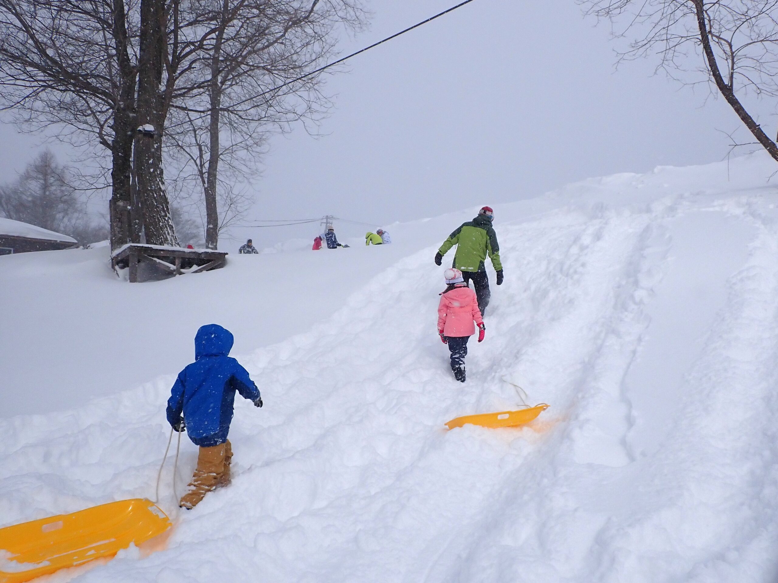 雪山も新雪!そりを滑るにはまずは踏んで固くする必要がありそうです。