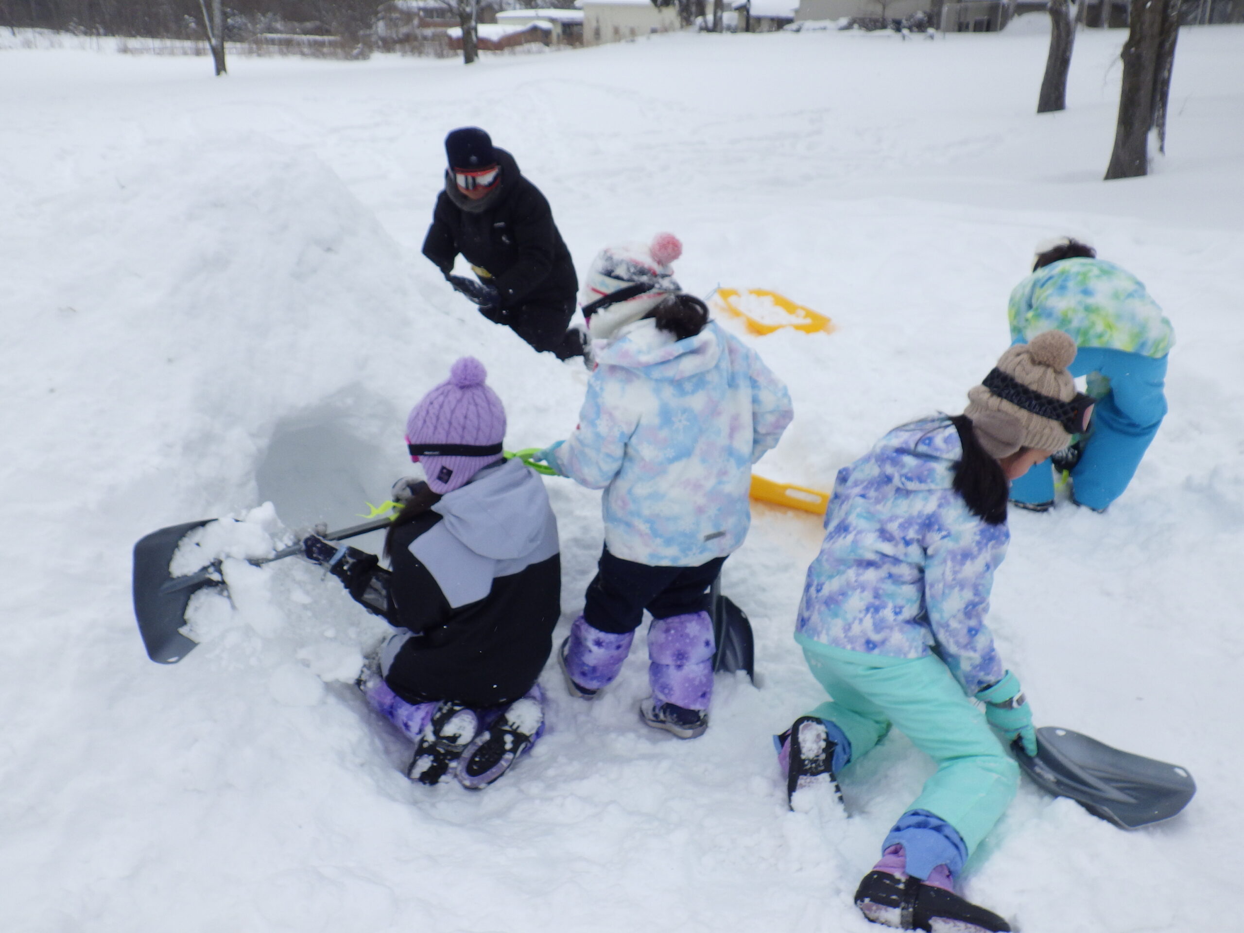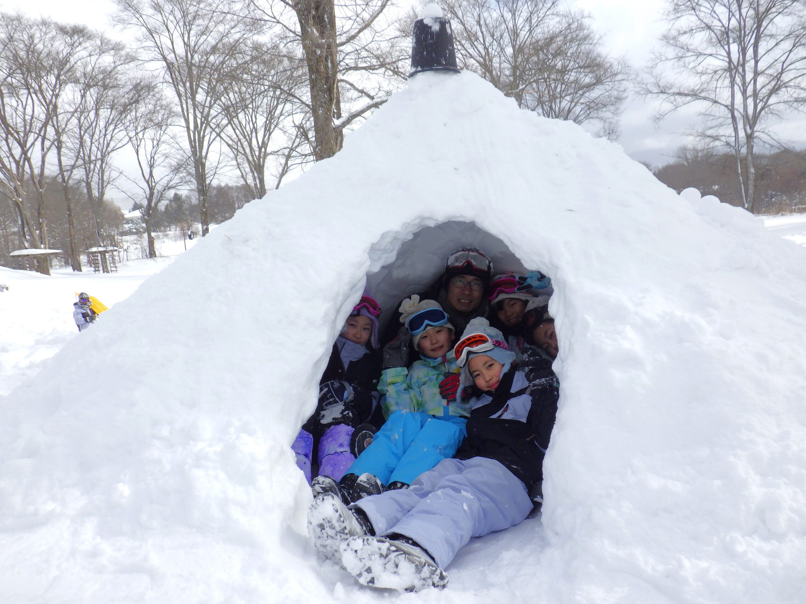一日がかりのかまくら完成!なんと中には子ども5人+おとな1人!