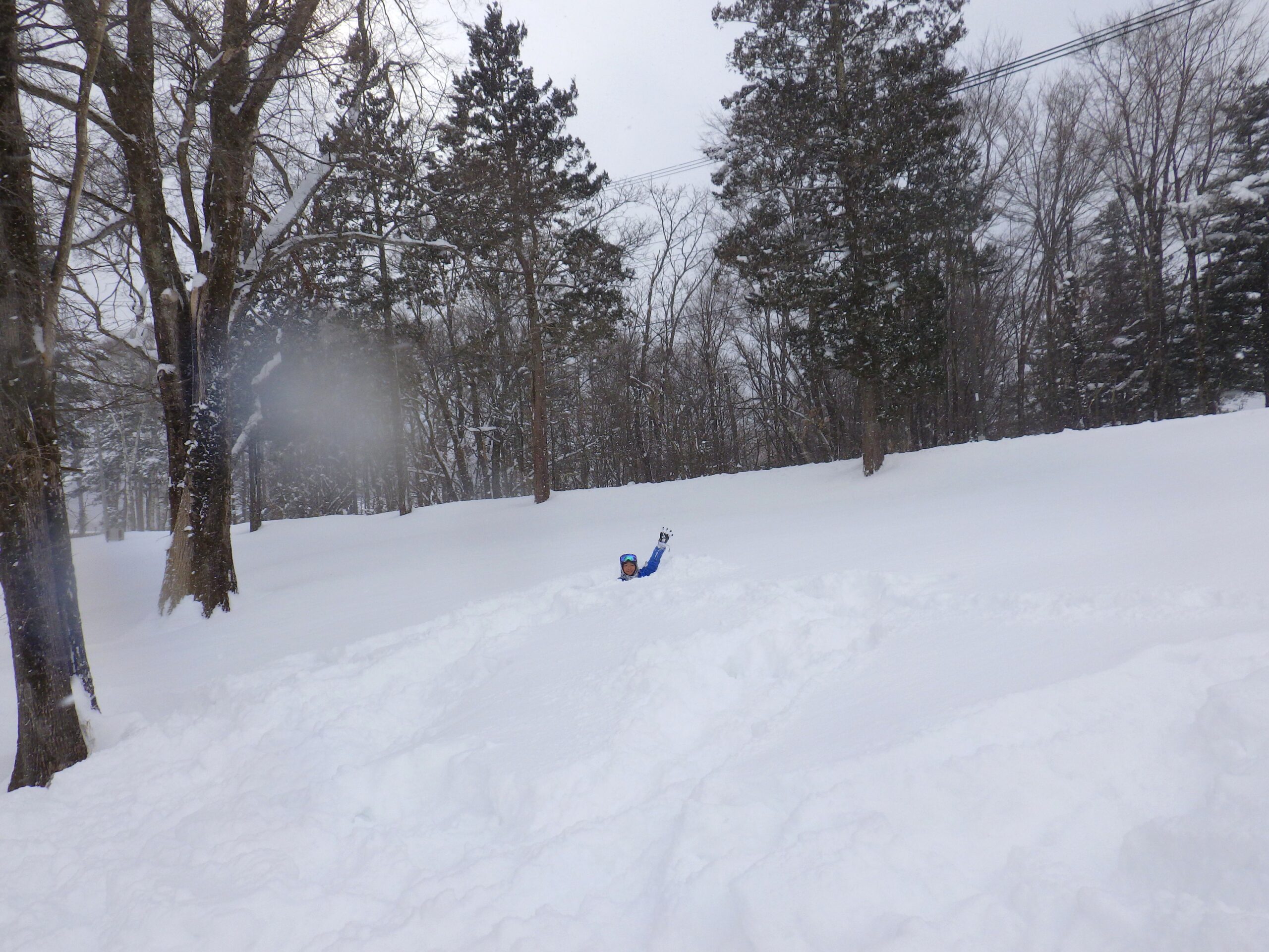 遊び場の森に足を踏み入れると、大人でも膝まで埋まるふわふわの雪!