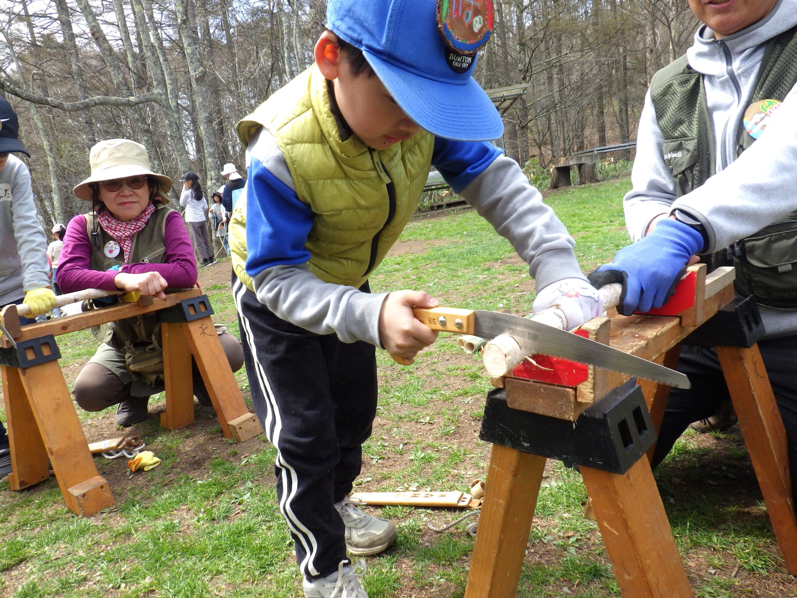 午後は、森遊びに使える道具を体験しました。やりたいものを選んで挑戦します!