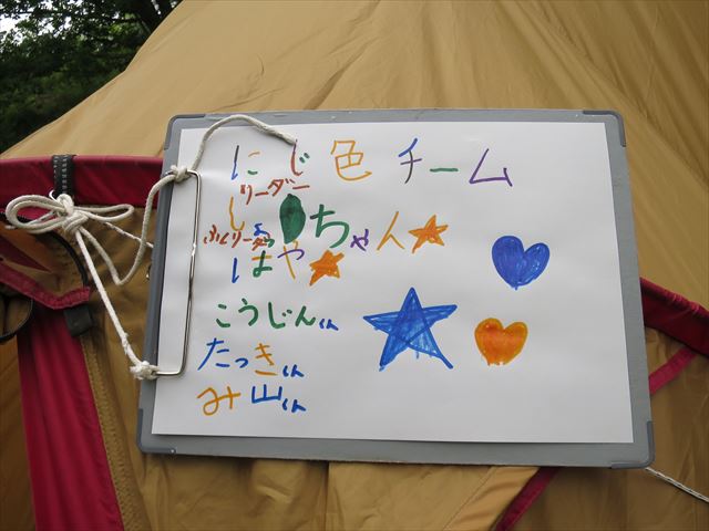 テントを立てたら表札作り