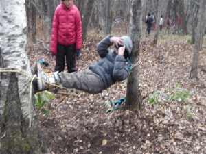 木のぼり、穴掘り、ハンモックづくり、ロープ投げ。