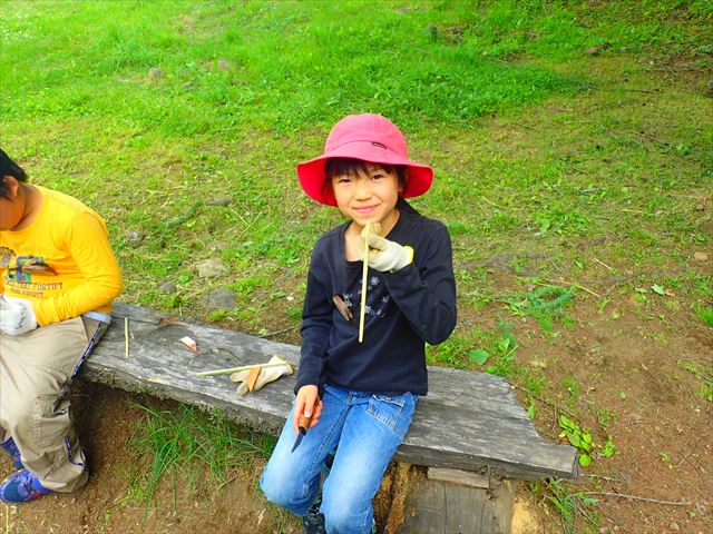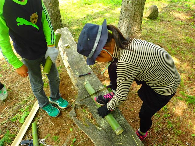 お昼を食べたら竹を使って夕飯で使う箸作り