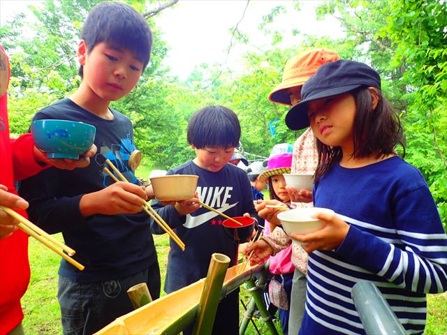 お昼は竹を準備して流しそうめん