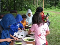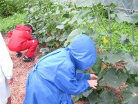 カラフルな雨具に身をつつみ、 やってきたのは一日目にFプランの仲間がはってくれた大屋根の下。 雨の日だけの特別プログラム「青竹クーヘン」づくりのはじまりはじまり。 火熾しをして、あぶった竹に薄く生地を巻いては焼き、巻いては焼きを繰り返します。 協力してふんわり焼きあがったクーヘンは、本当においしかったです。 午後は雨が上がったので、テント張りと五右衛門風呂。 行列のできる森のお風呂屋さんは、お湯加減もちょうどよくできました。 雨がやんだら、うっすらと虹を見ることもできました。 夕飯は、とれたて野菜のたっぷりはいった具だくさんのスープをたくさんおかわり。 夜は、みんなの希望で肝試し。 仲間の手をぎゅっとにぎって、夜の森を探検しました。 昼間とは違う空気にドキドキの夜でした。 IMG_1953 IMG_1957 IMG_1958 IMG_1960 IMG_1964 IMG_1967 IMG_1968 IMG_1970