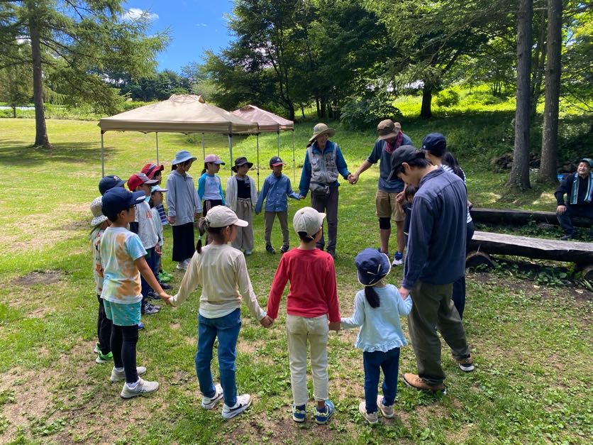②自然体験の森へ移動して、アイスブレイク、自己紹介からスタート。
