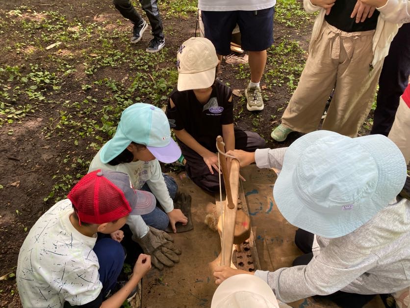 ⑤続いて、ご飯を炊くためにマイギリ式で火おこしスタート