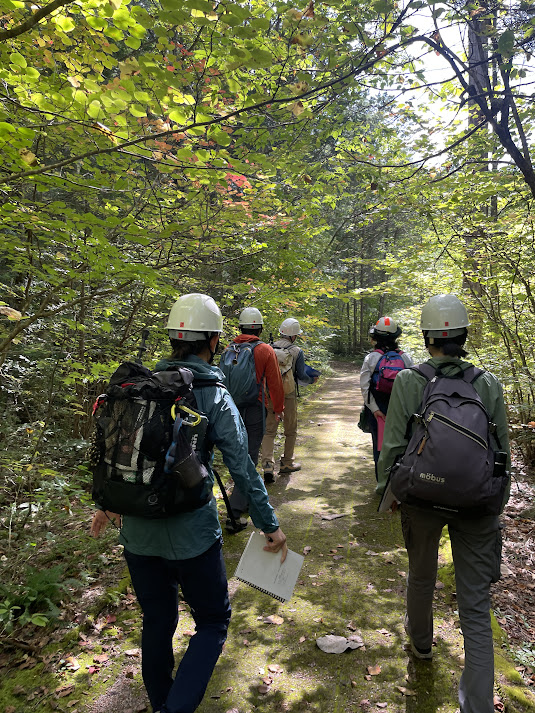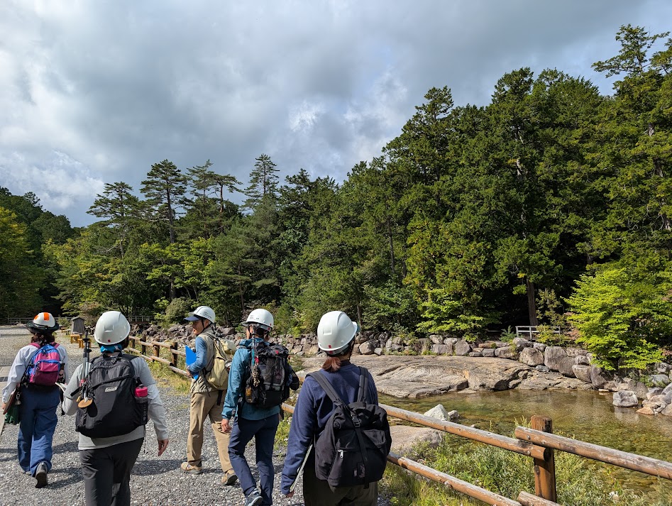 今回は、森林官の大野田さんと吉村さん、そして上高地白樺自然学校のガイドもされる百瀬さんにご案内いただきました。