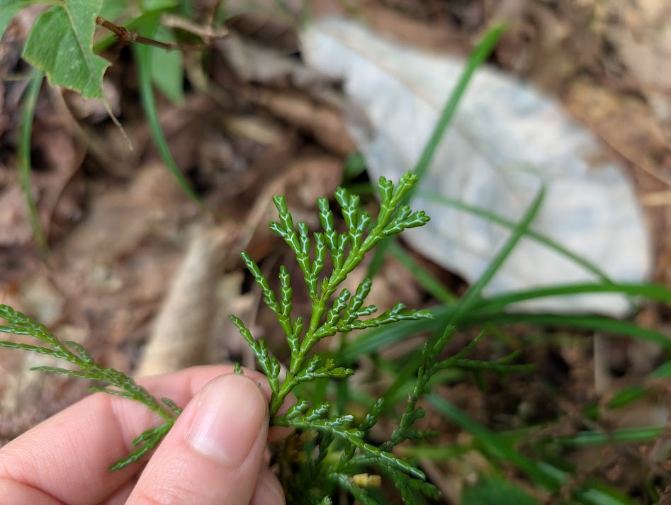 そんな説明と説明の間には皆、昨日教わった木曽五木を見分けるのに夢中( 写真はヒノキ )。