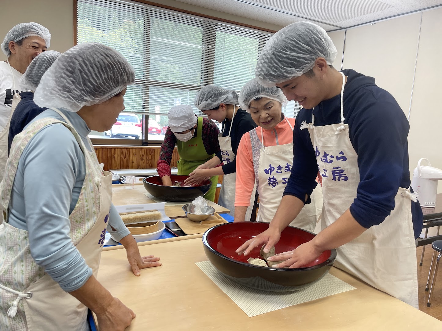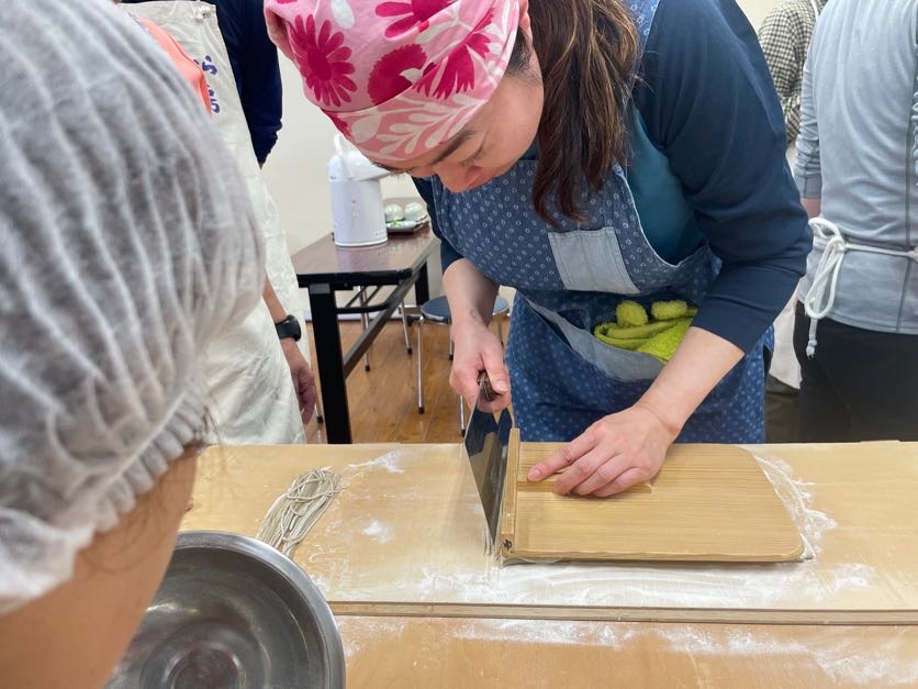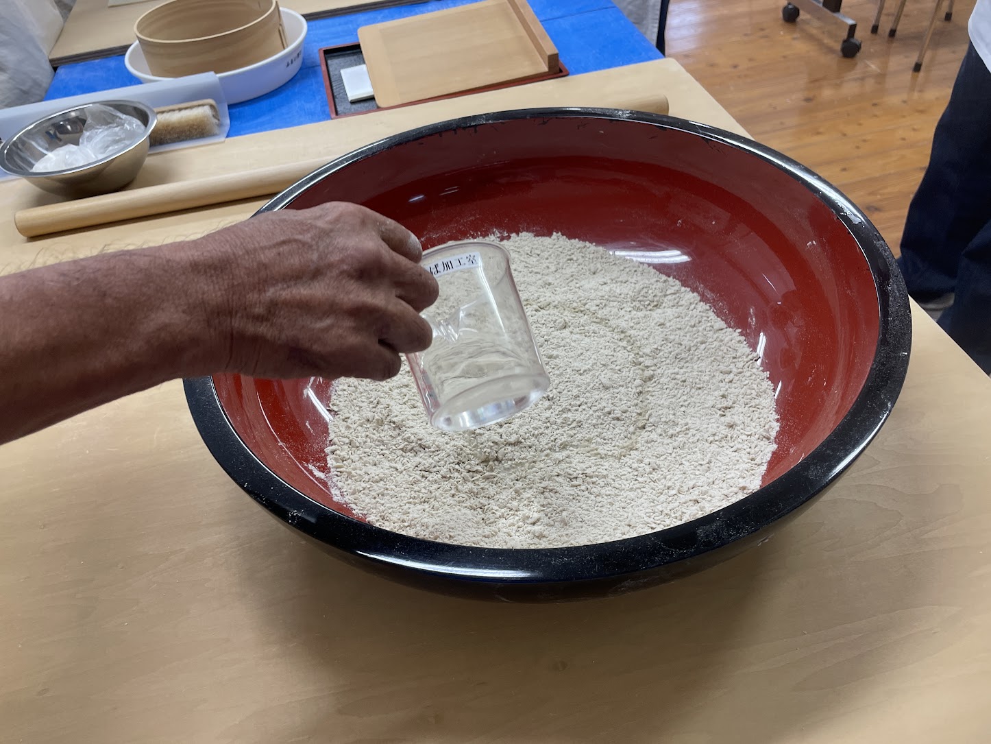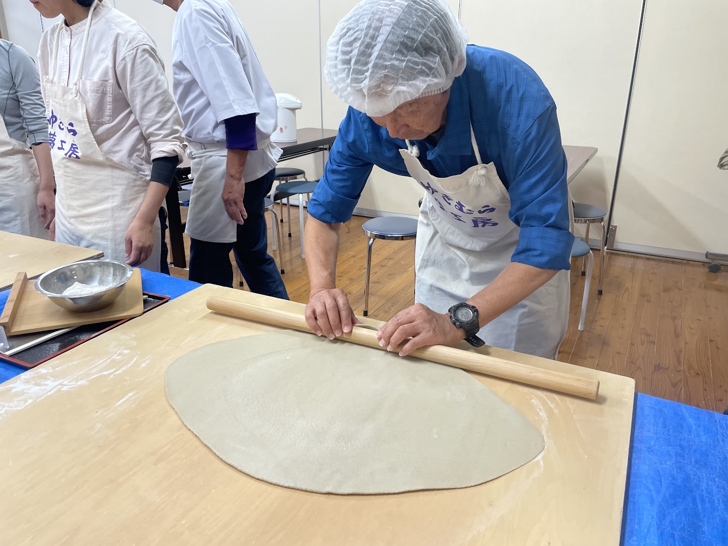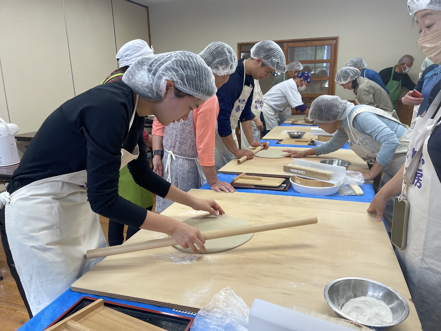 きのこ採りを目的に来たという方がほとんどだったのですが、あーでもない、こーでもないと(笑)、終始笑いの絶えないそば打ち体験になりました。