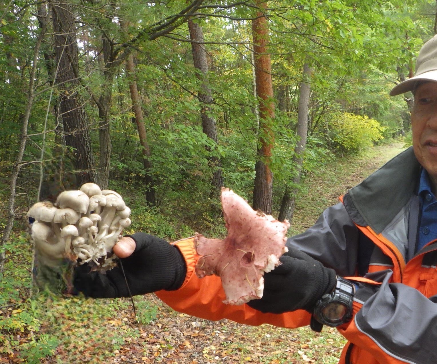 途中には、なかなかお目にかかれないという釈迦しめじ(以下の写真の左)や
