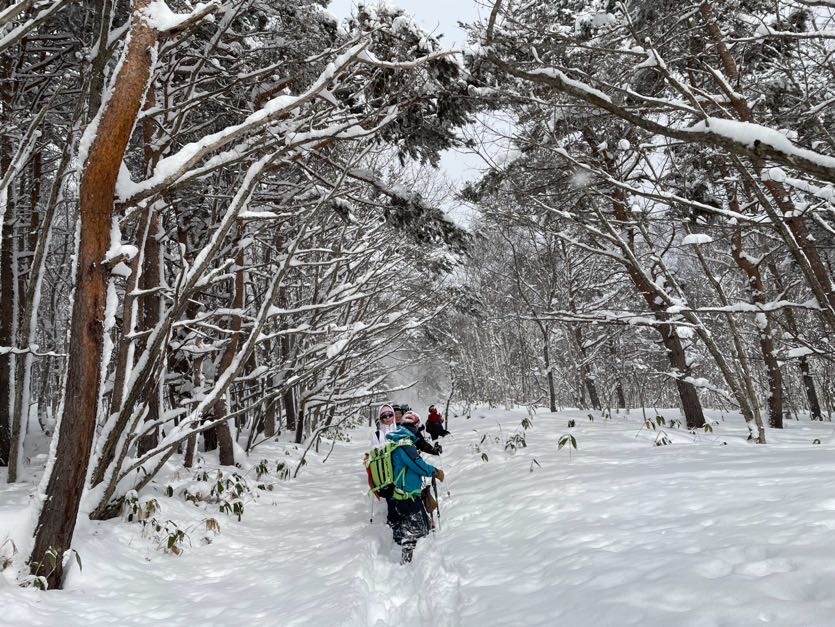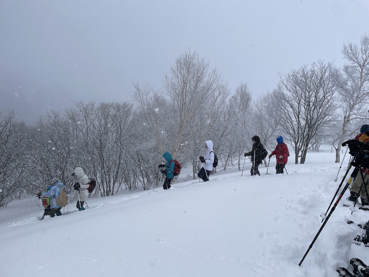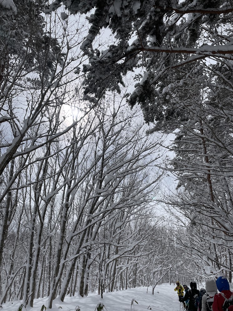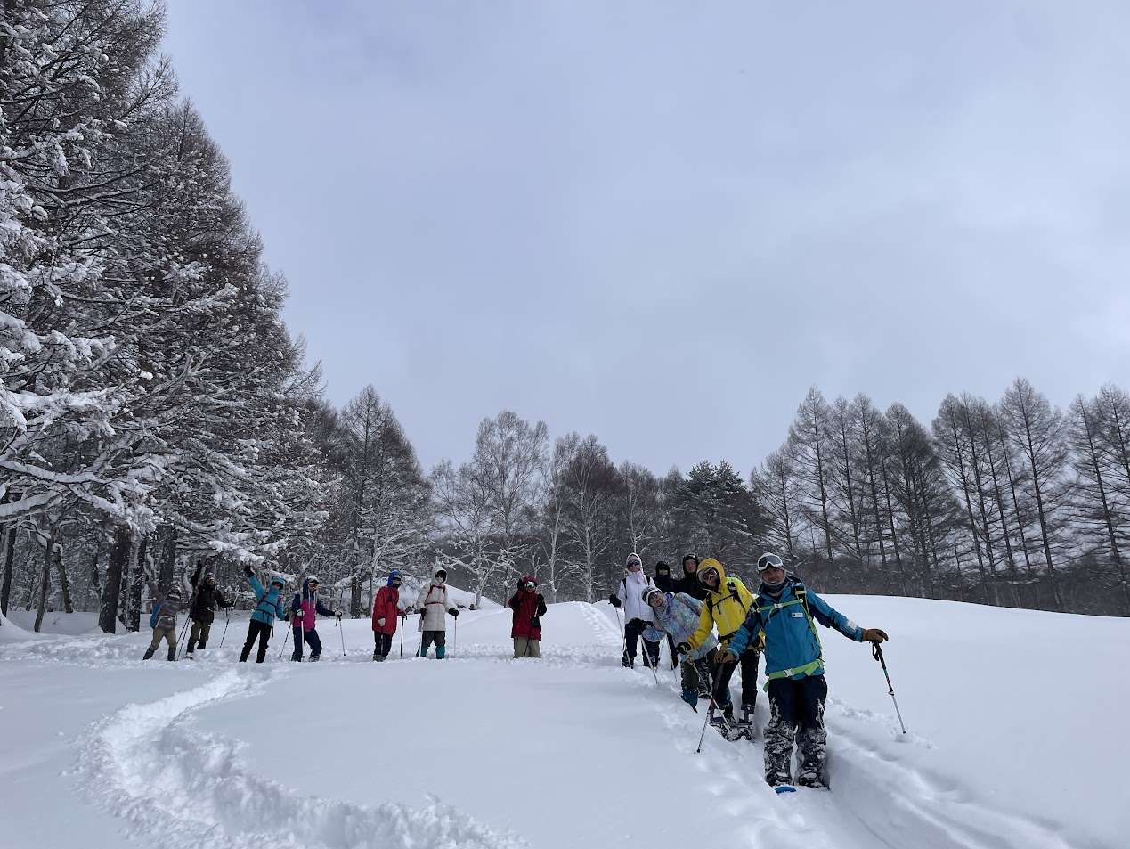 今回の参加者の方々はなかなかのチャレンジャーで、後半はラッセル(先頭となり雪をかき分けて進むこと※体力が非常に消耗します)をスタッフに代わり交代で行ってくれました。
