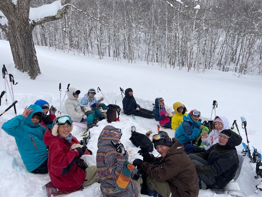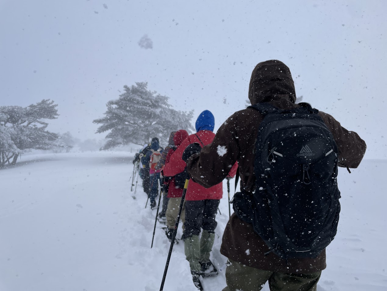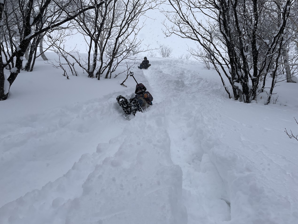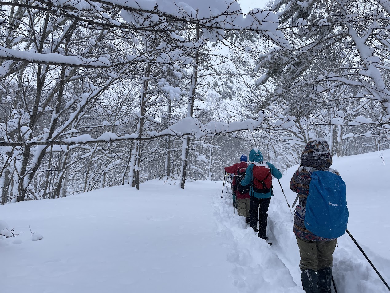 今回の参加者の方々はなかなかのチャレンジャーで、後半はラッセル(先頭となり雪をかき分けて進むこと※体力が非常に消耗します)をスタッフに代わり交代で行ってくれました。