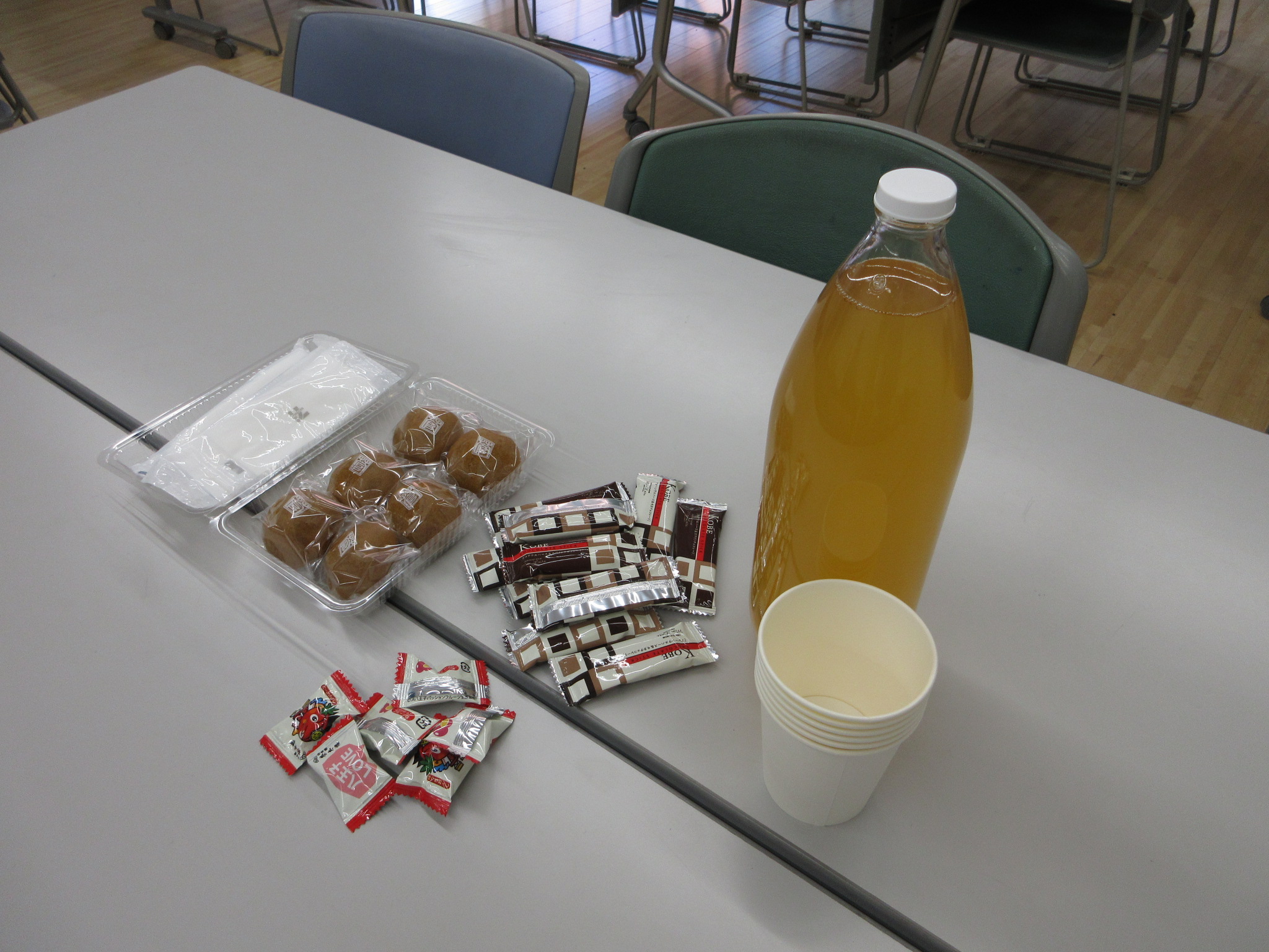 ② 今回は⾧野スタッフがトンボ帰りのため評価会前に茶話会をセッティング。
