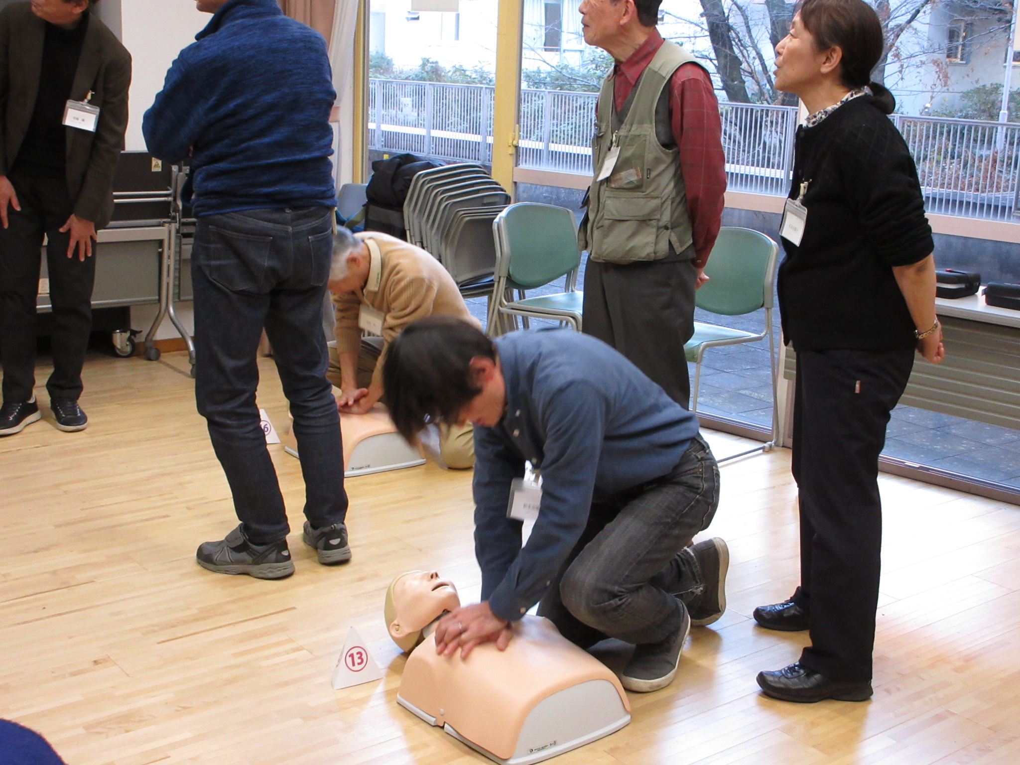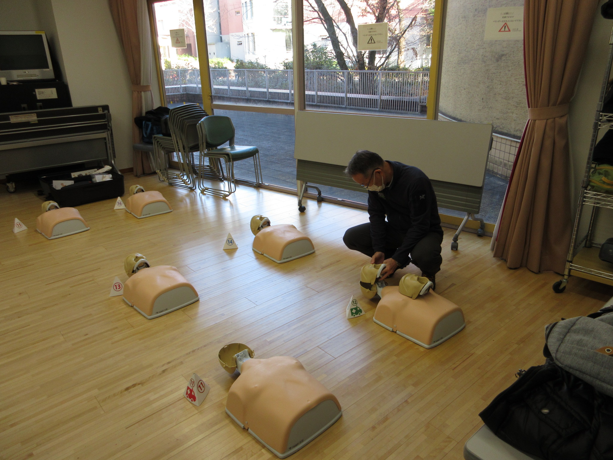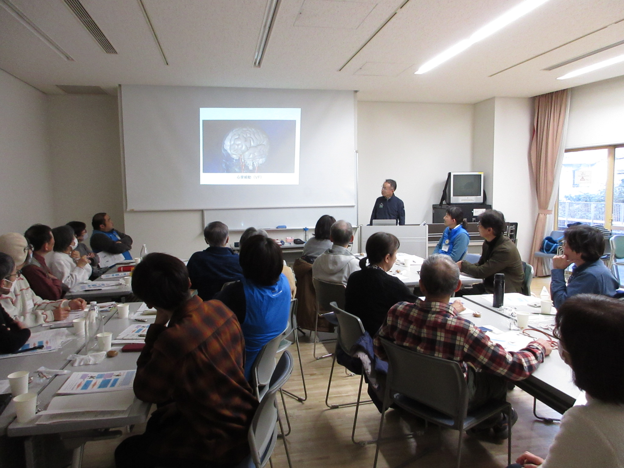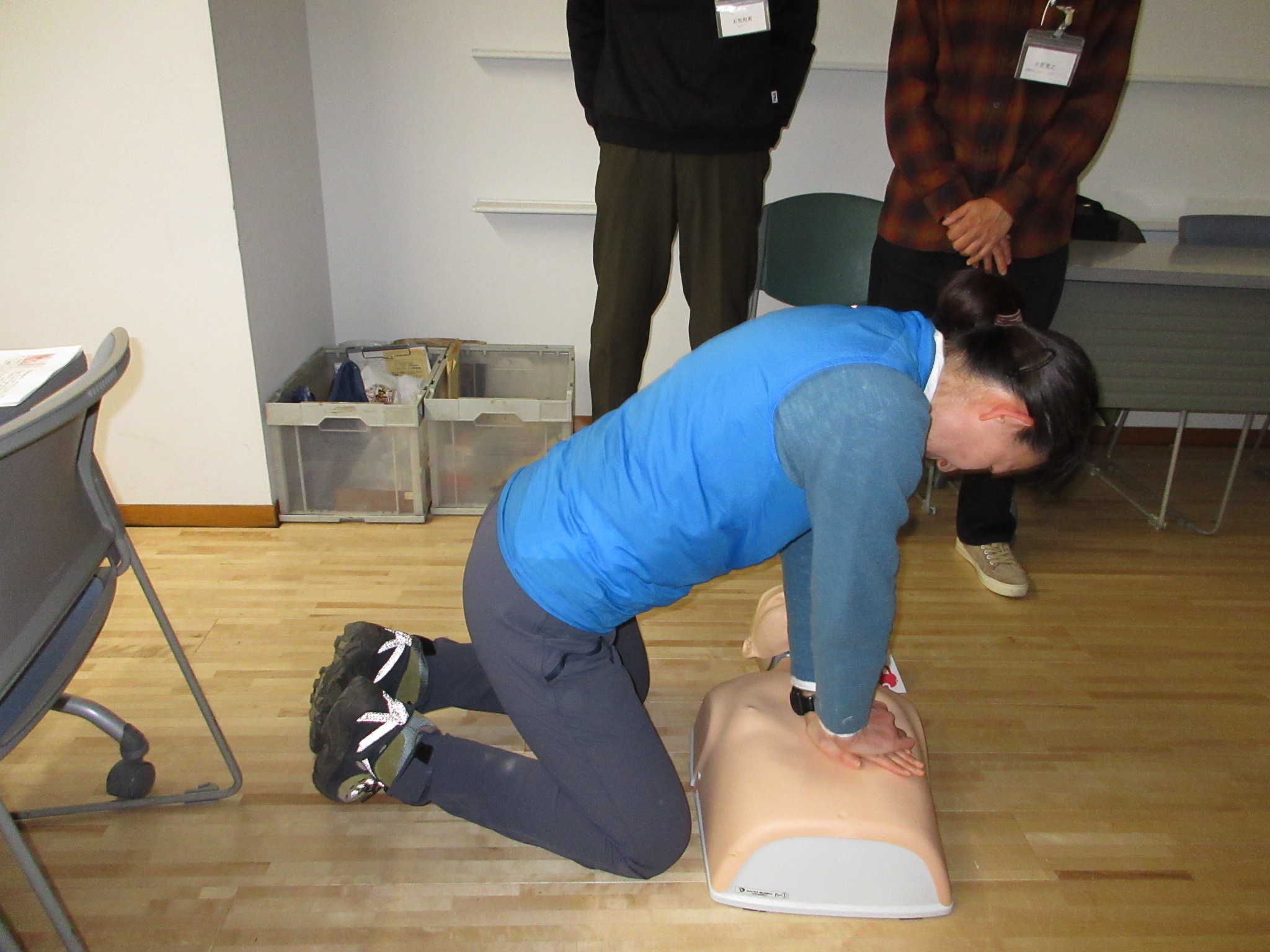 毎年恒例の業務総括と AED 実習を含む安全研修を実施しました。