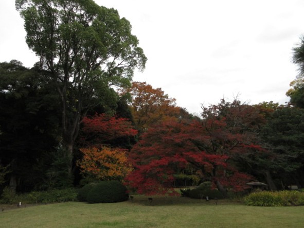 周囲は建築物の高度規制あるため、山手線内に位置する六義園ですが高層ビルなどが見えません。