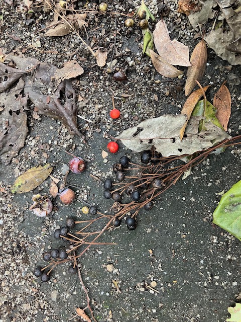 ⑨ 赤い実はイイギリ。離れたところに房ごと落下しているものも見つかりました。