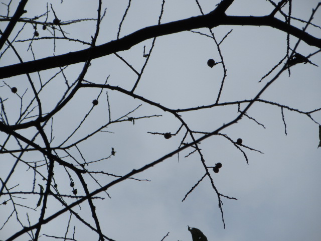 ⑧ 葉はほぼ落ちてしまっていますが、実がついているのがわかります。(恐らくマメガキ)
