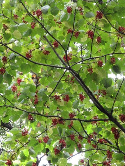もうひとつの黒っぽい実はハゼノキのようですが、鬱蒼としていて周囲には見当たりませんでした。