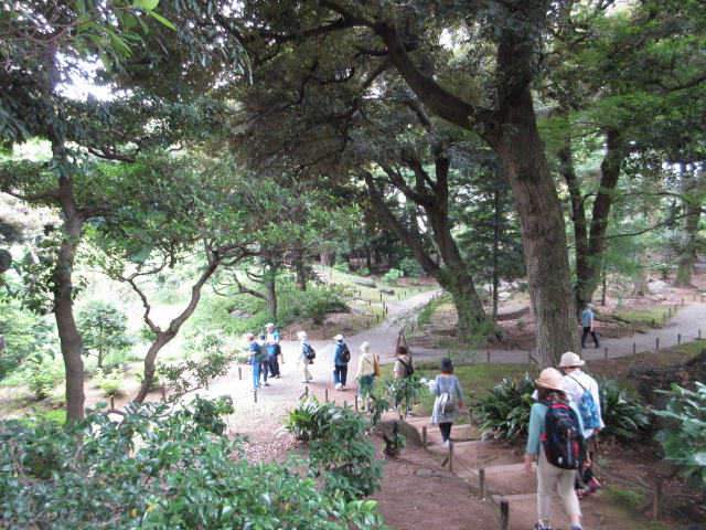 ⑥鬱蒼とした杜を抜け、北池付近の芝生広場へ