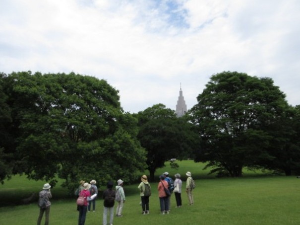 ⑦都内森めぐりコース開講以来、毎年欠かさず成長を観察している画面中央の「ムクロジ」
