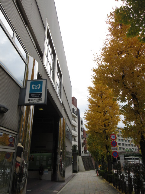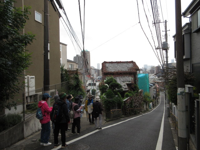 ⑯ 日無坂(二差路の左側)は目白台地(手前)と神田川流域の低地(道奥)を南北に結ぶ坂のひとつ。