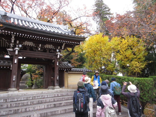 参道にはサクラ並木、山門脇には黄葉したザクロ。