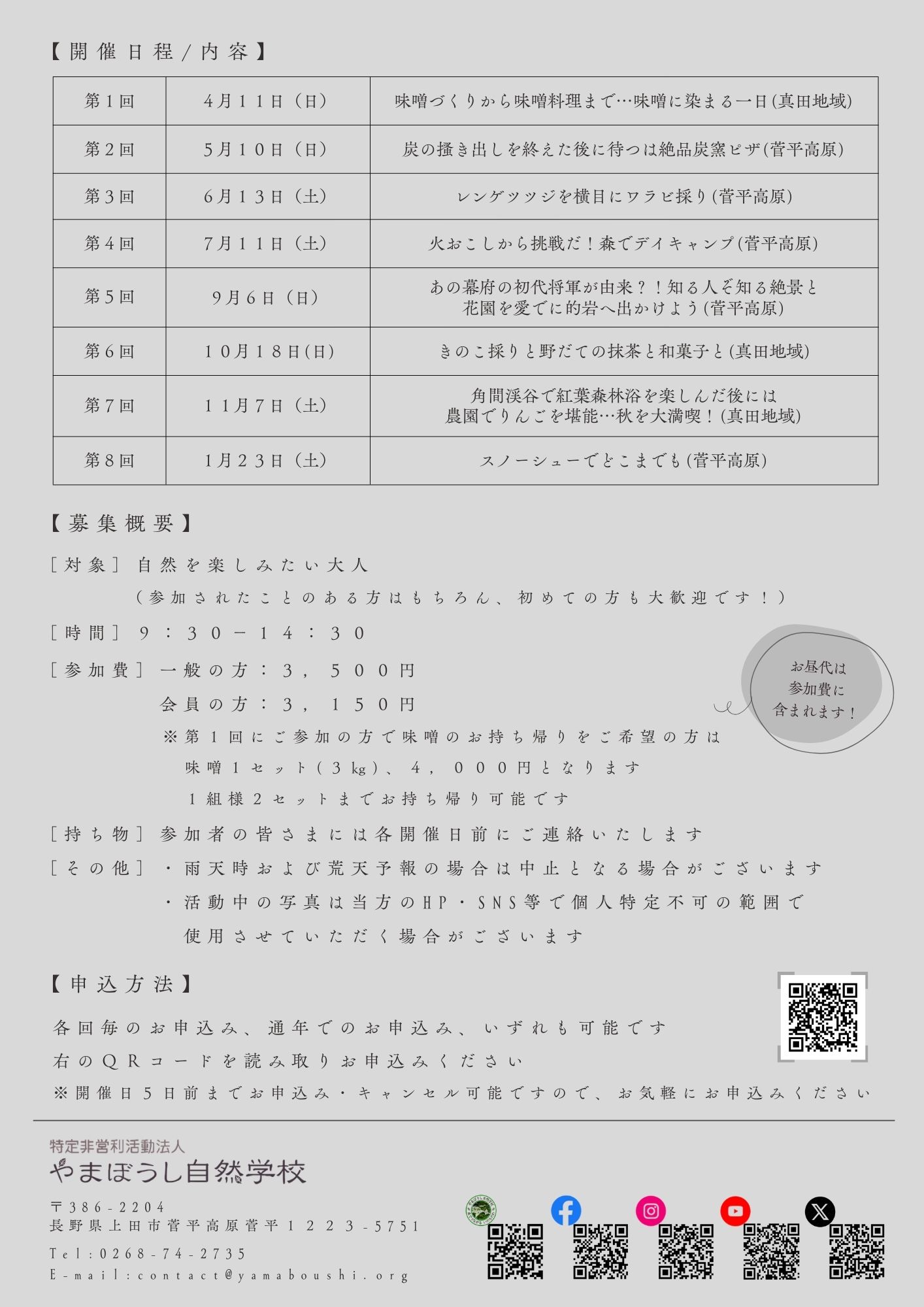 ※通年でのお申込みはもちろんのこと、各回毎のお申込みも可能です
