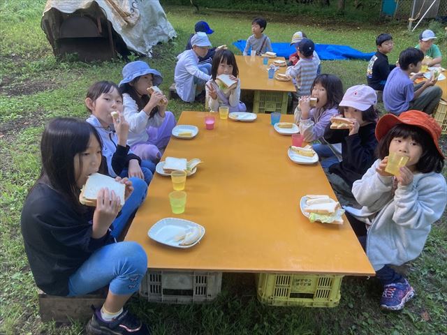 雨の降る中ですが、焼きたてのピザで、口の中をやけどしそうになる子もいましたが、それぞれが美味しそうにピザを頬張っていました。