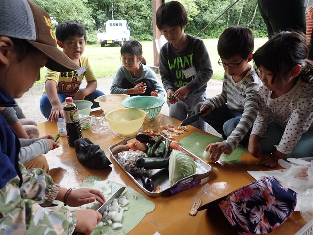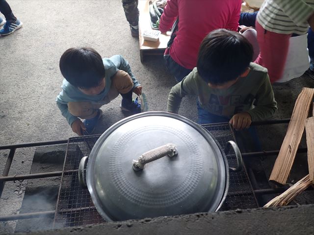 2日目は雨を予想して、屋根のある炊飯場でご飯づくりをしました。