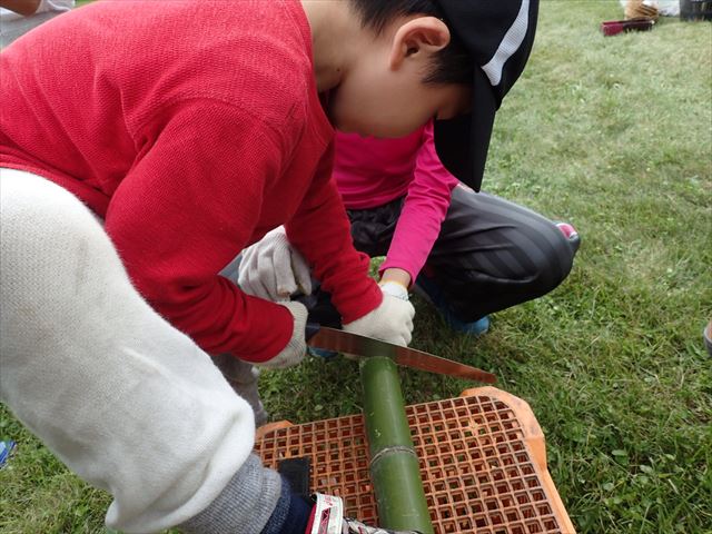 頑張って竹を切りました。
