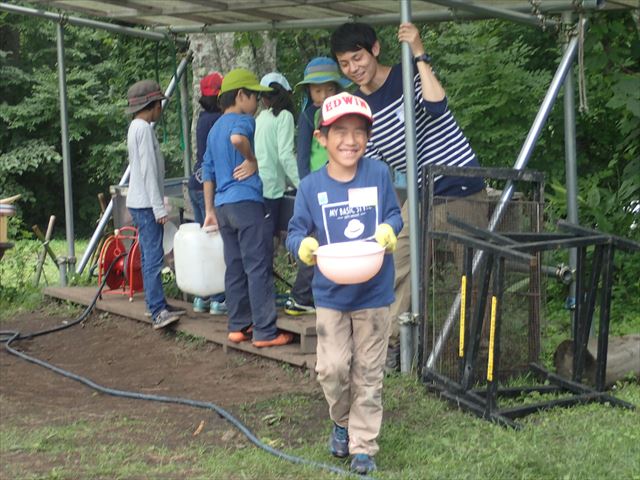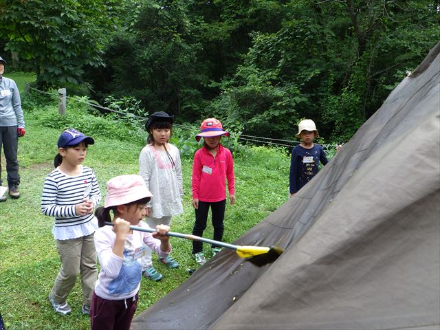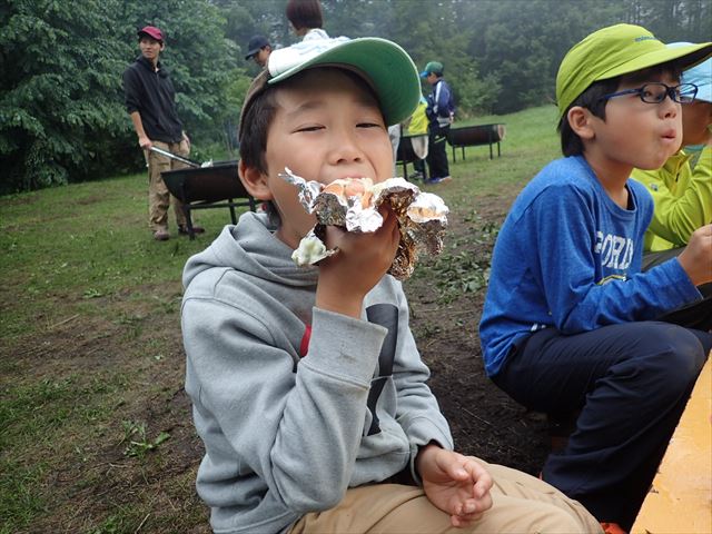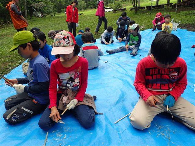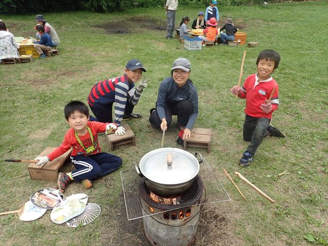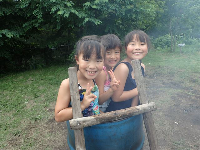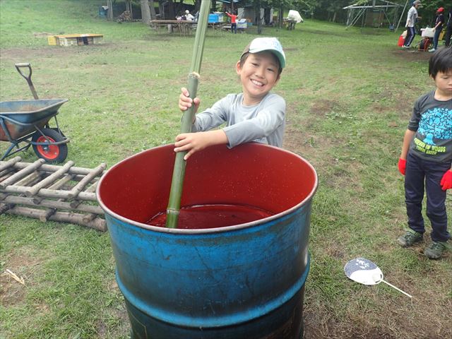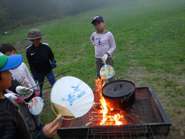 水を汲む係、火の管理係で協力して完成