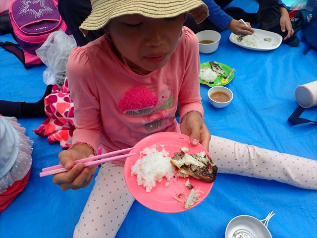 お昼はご飯と豚汁、そして魚を焼いて食べました。