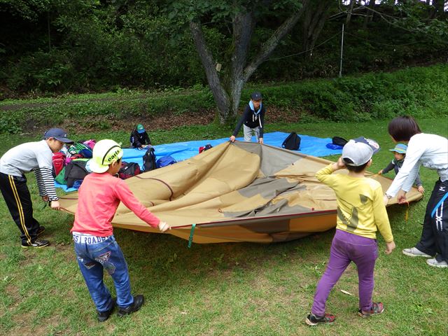 みんなが集まったら3泊する自分たちのテントを立てました。