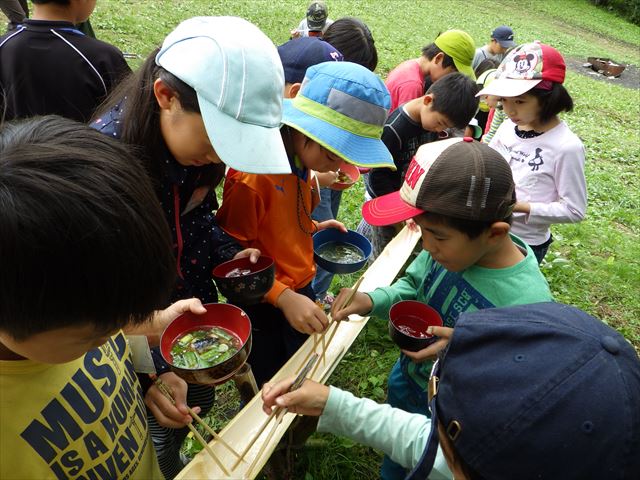 最後にみんなで食べる昼食は流しそうめん