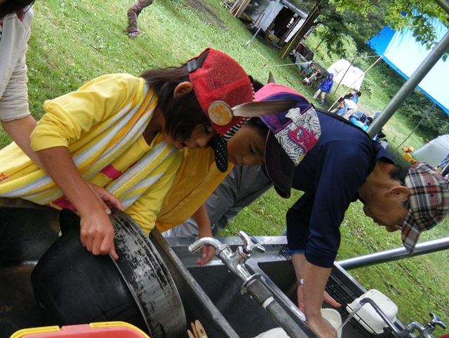 お昼を食べた後は、みんなの寝床、テントをたたみました。 この4日間で家族のように仲良くなった28人の原人たち。 初めて挑戦したことや仲間に助けてもらったこともいっぱい。 「ぼくの上着がなくなっちゃったんだよ」 『じゃぁ、一緒に探そうよ!』 「これ、なかなかうまくいかないの~・・・」 『どこ?かして。わたしできるよ~』 原人達が仲間を思いやる姿、協力する姿など どんどんたくましくなっているのが分かりました。 初日の朝の「ひさしぶり~」の声。 来年もまた、原人たちが菅平で再会できたら嬉しいです。