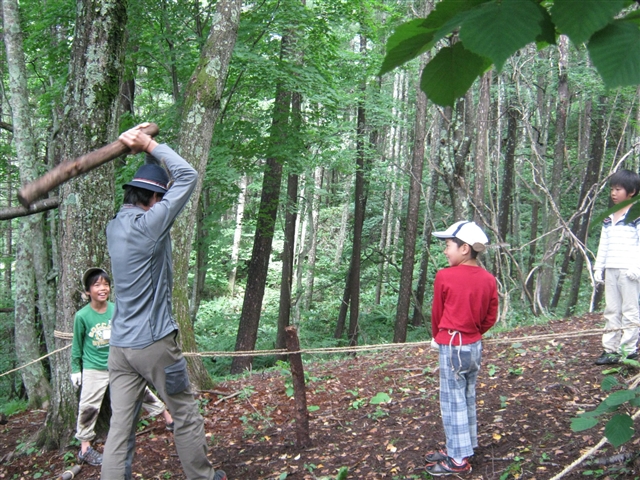 竹を自分たちで割り、竹をくんで台を作り、実施しました。