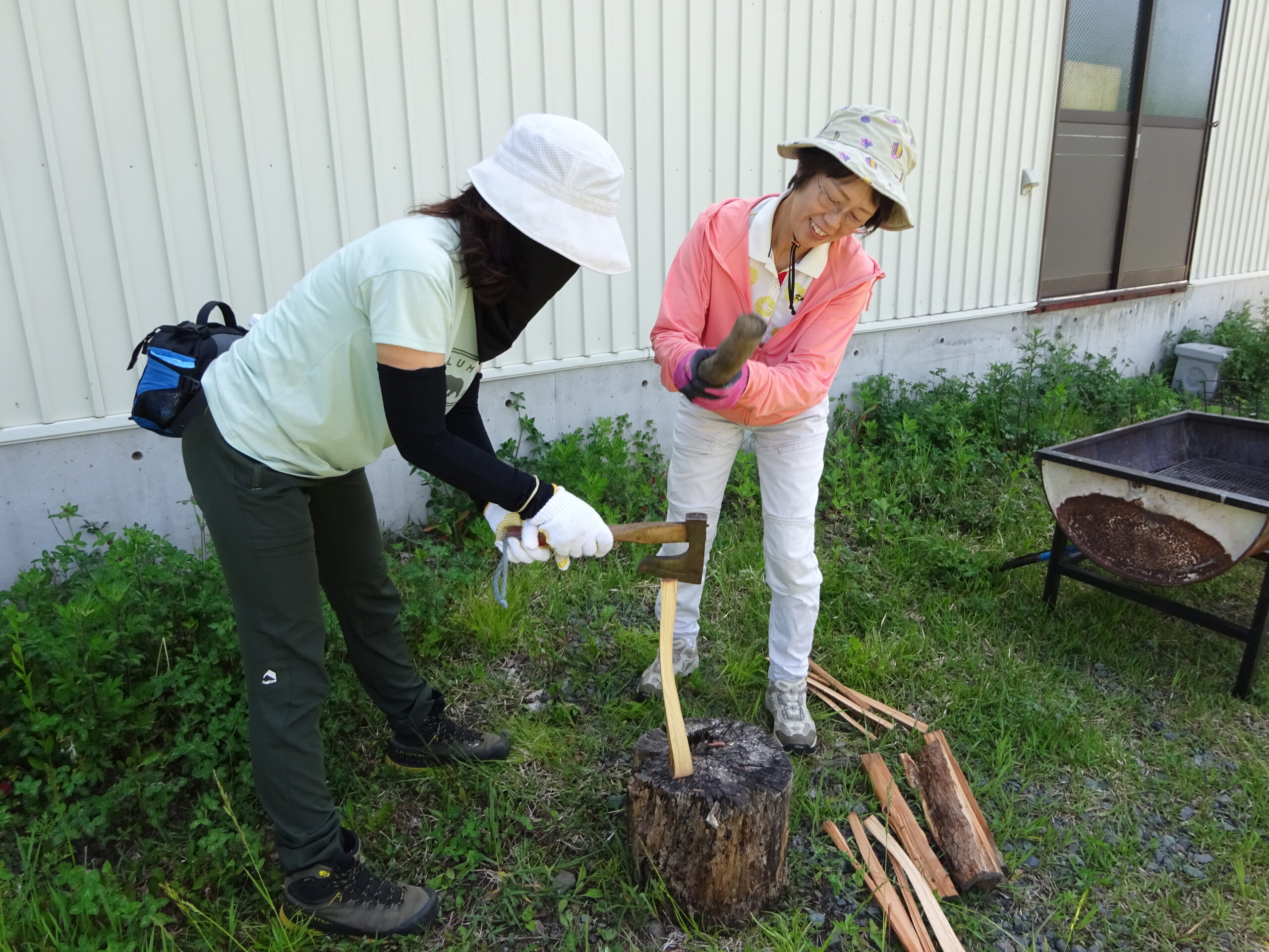 手斧を使って安全に割る