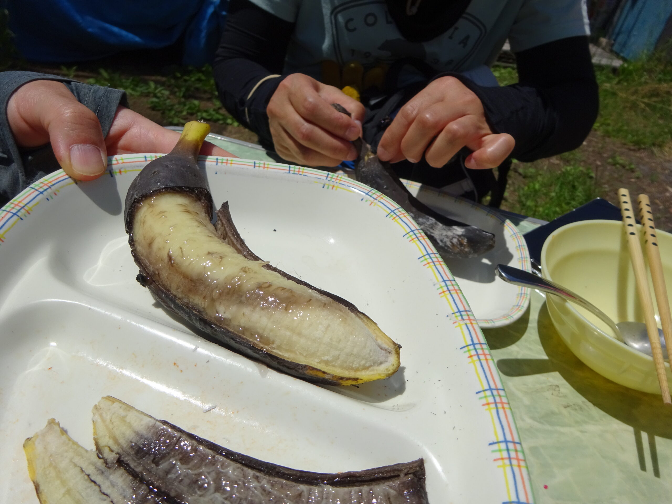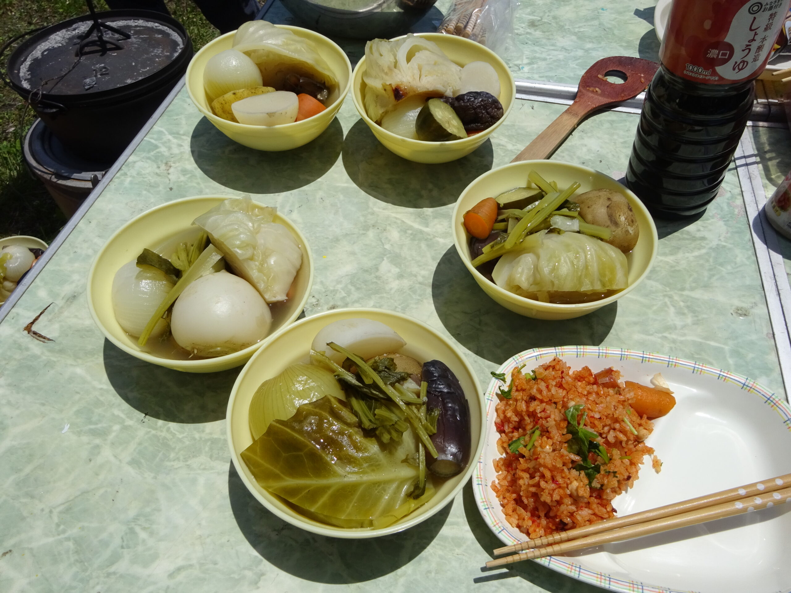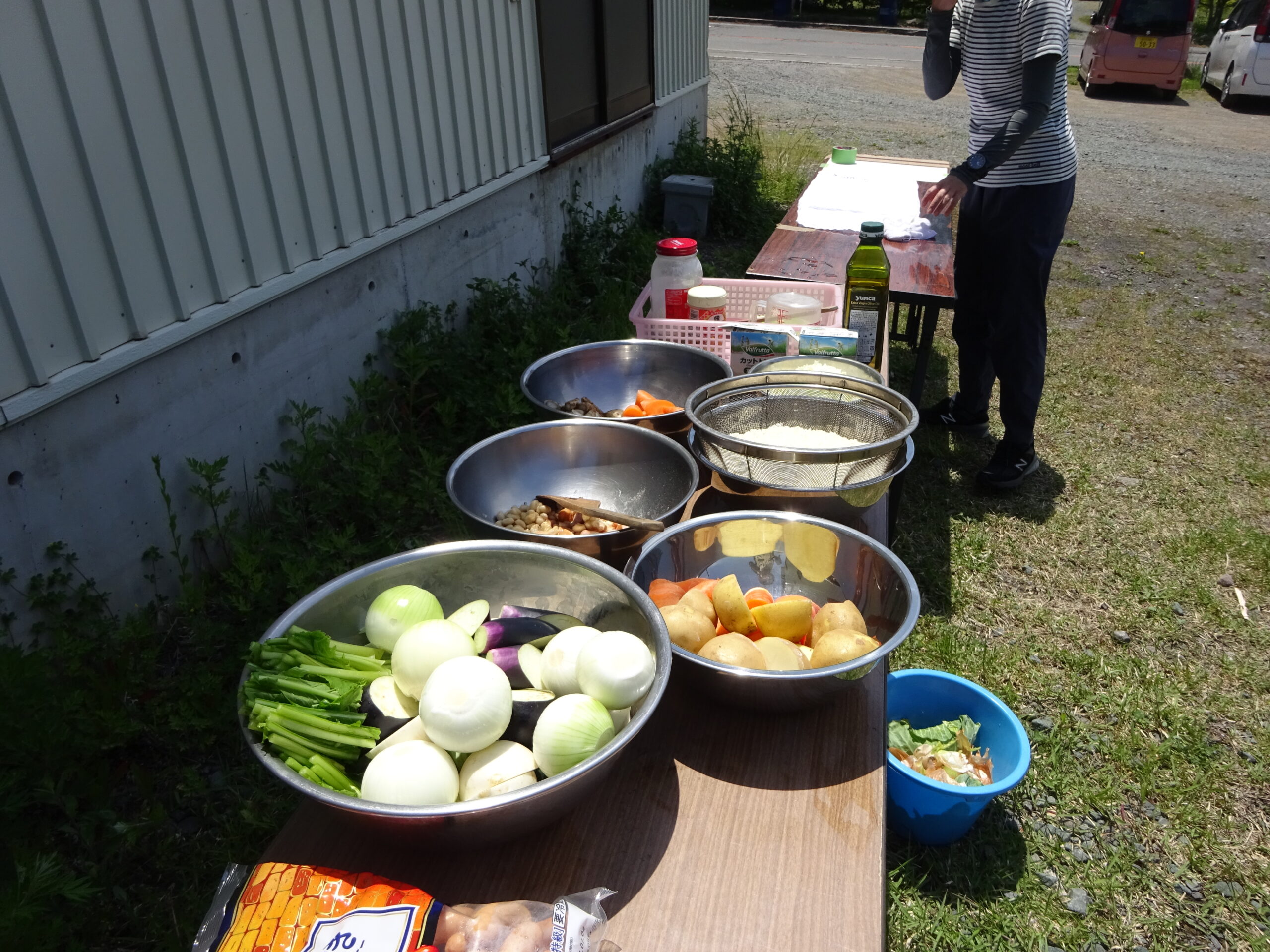 今回は自然体験の森は森でモリモリ遊び隊チームがキャンプで使用しているので事務所横でいただきます