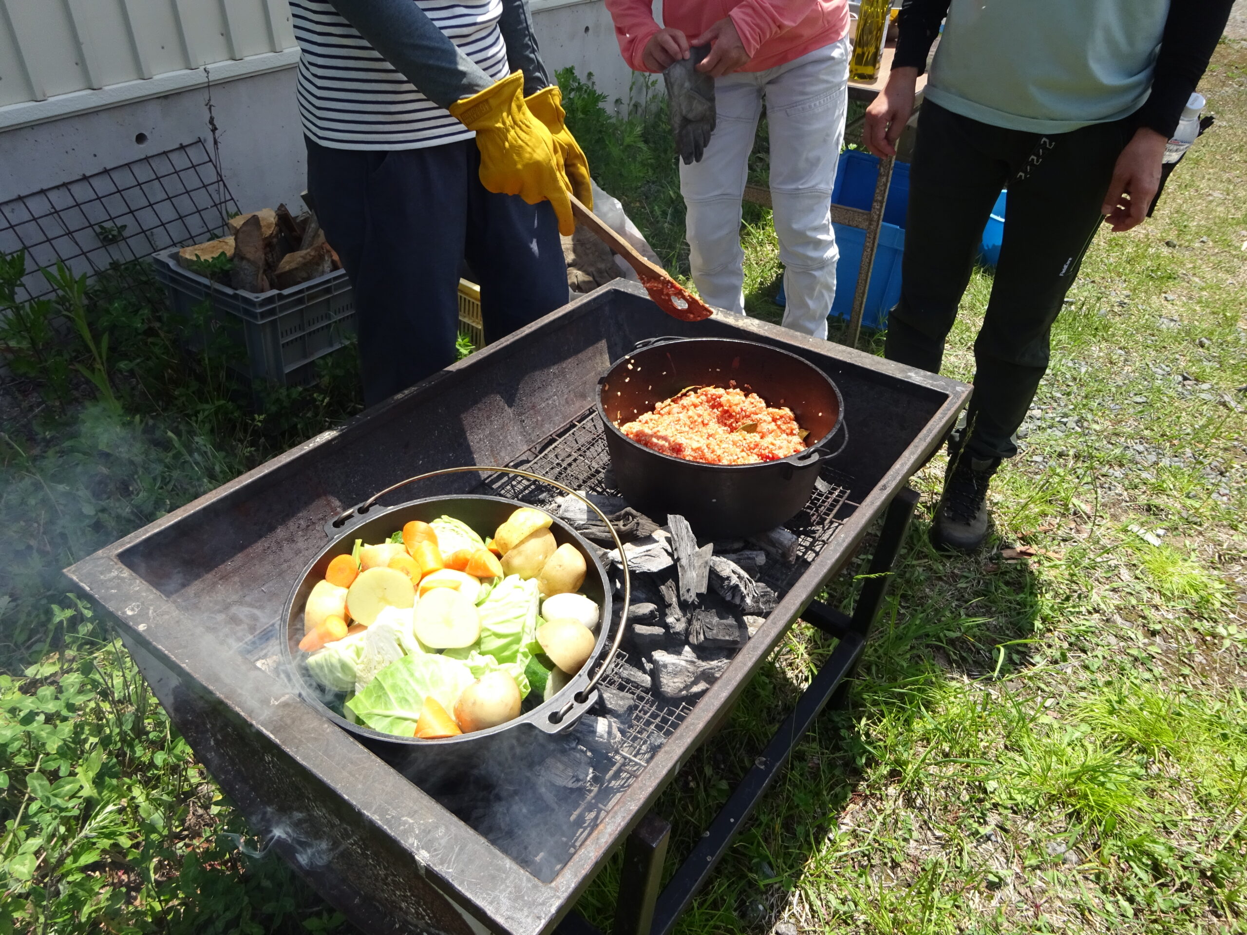 今回は火おこし2種とダッチオーブンを使った野外料理に挑戦して頂きました。