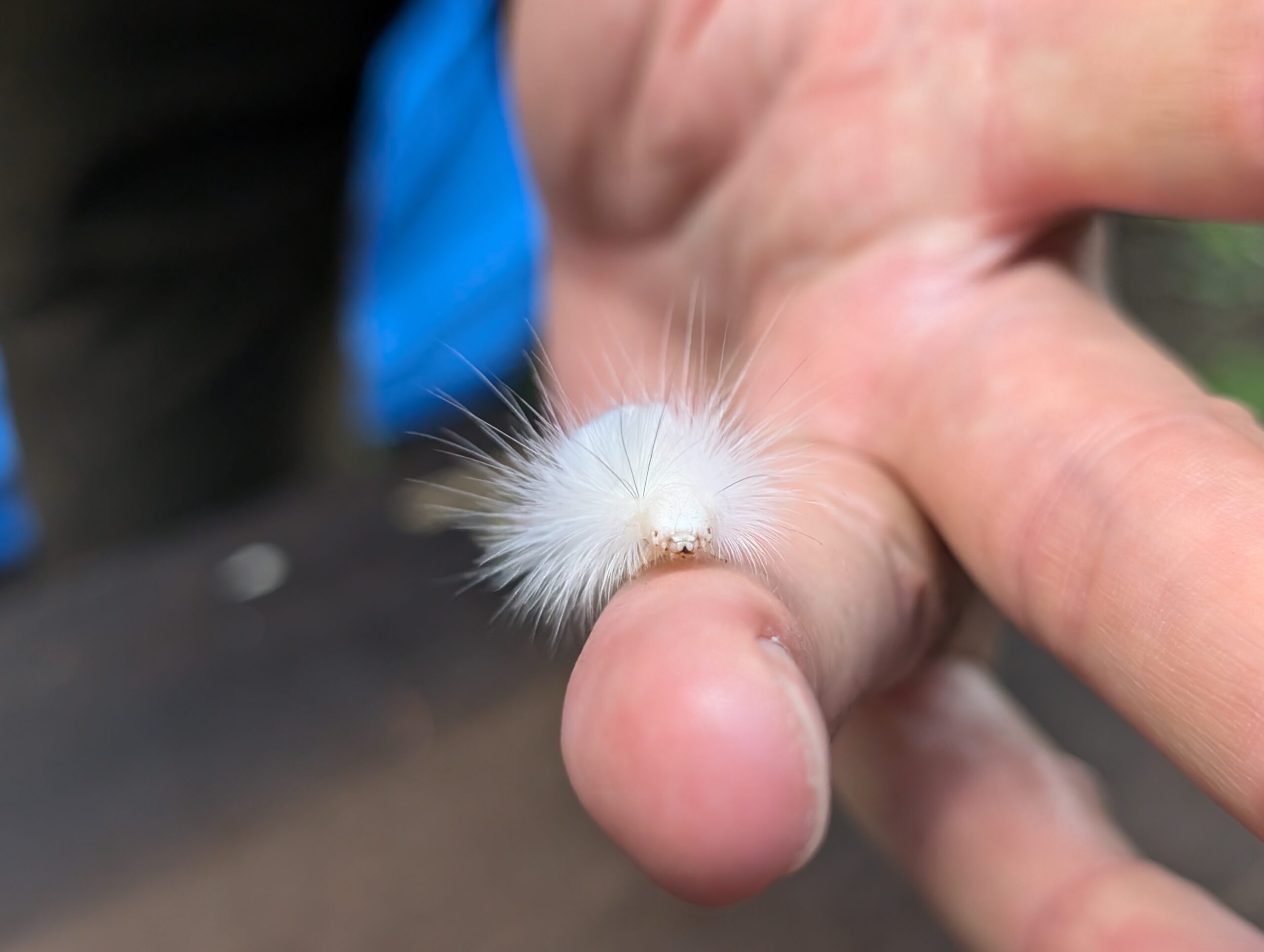 珍しい白いリンゴドクガにも遭遇し、しばらく観察を楽しみました