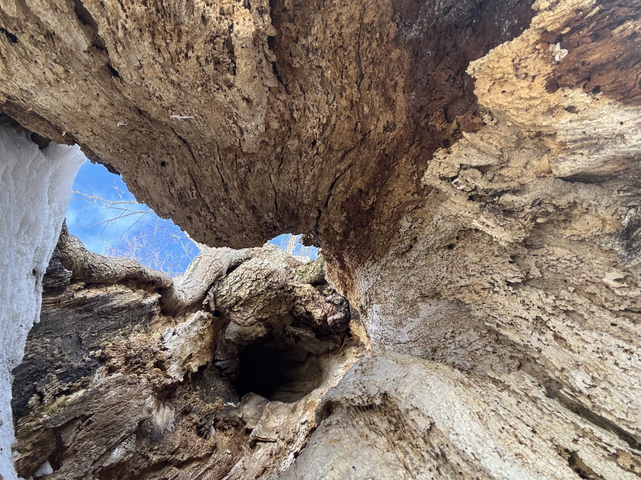 これはミズナラ大王の中身。落雷のため、中はすっぽり穴が空いています。