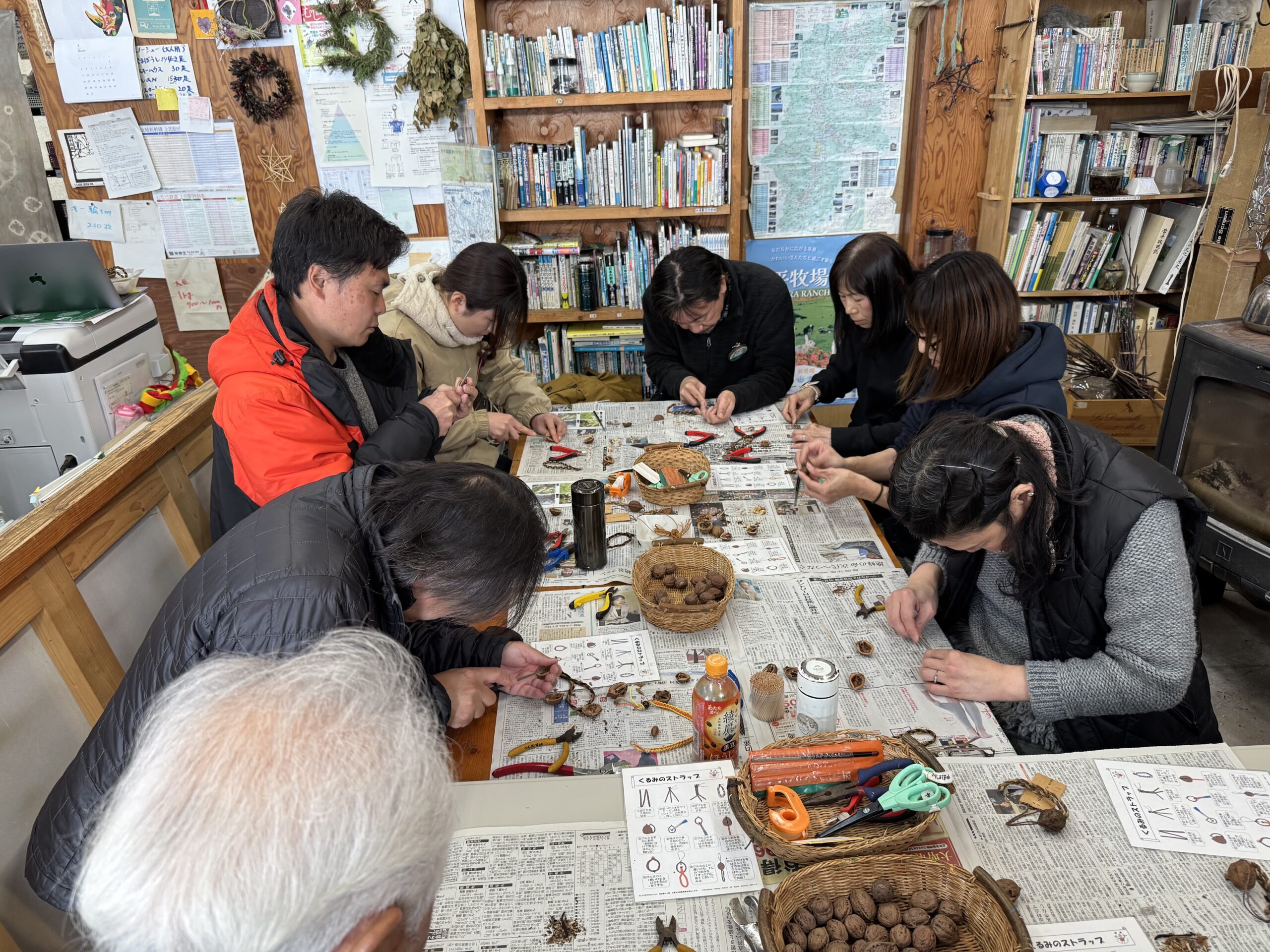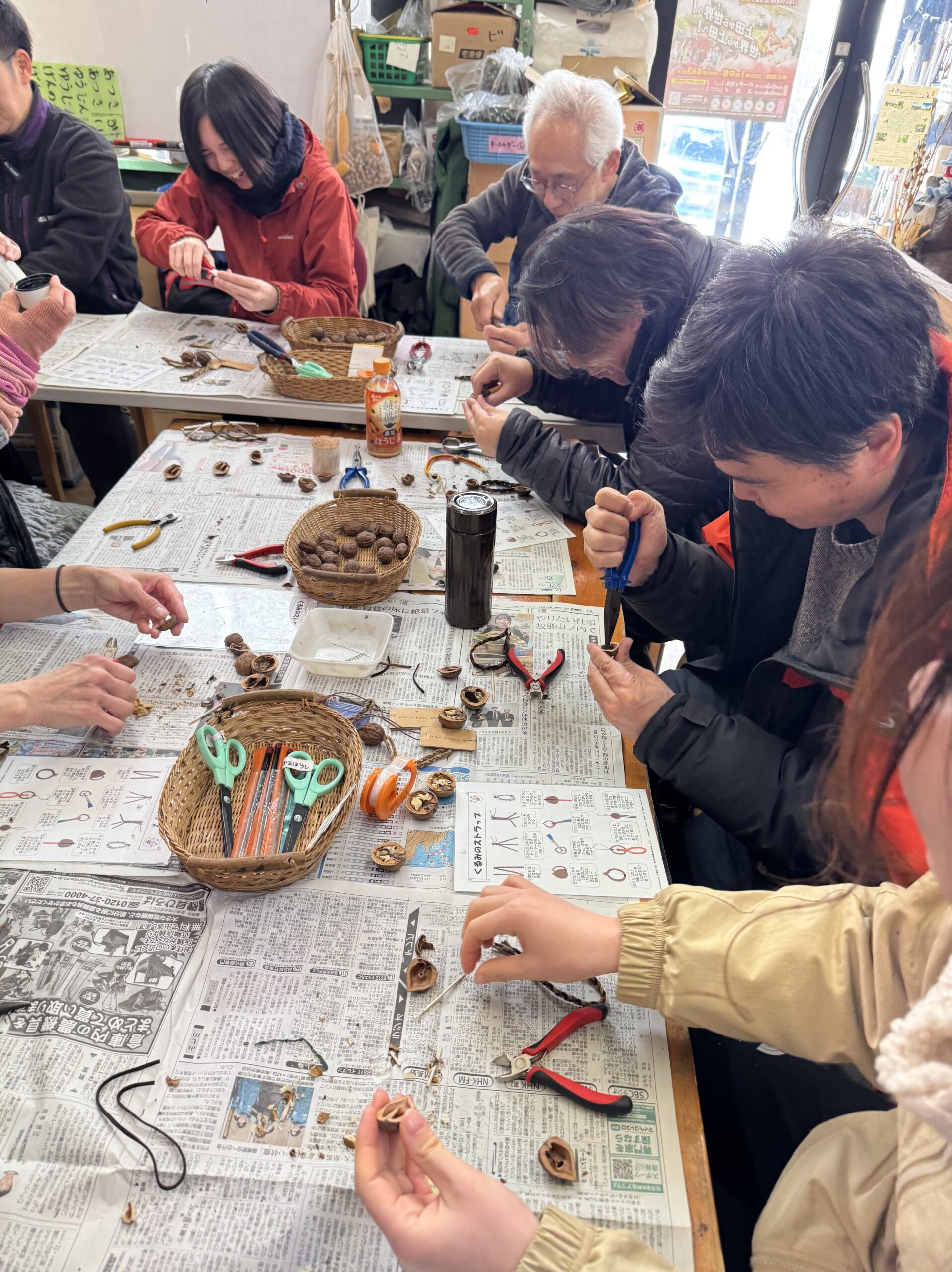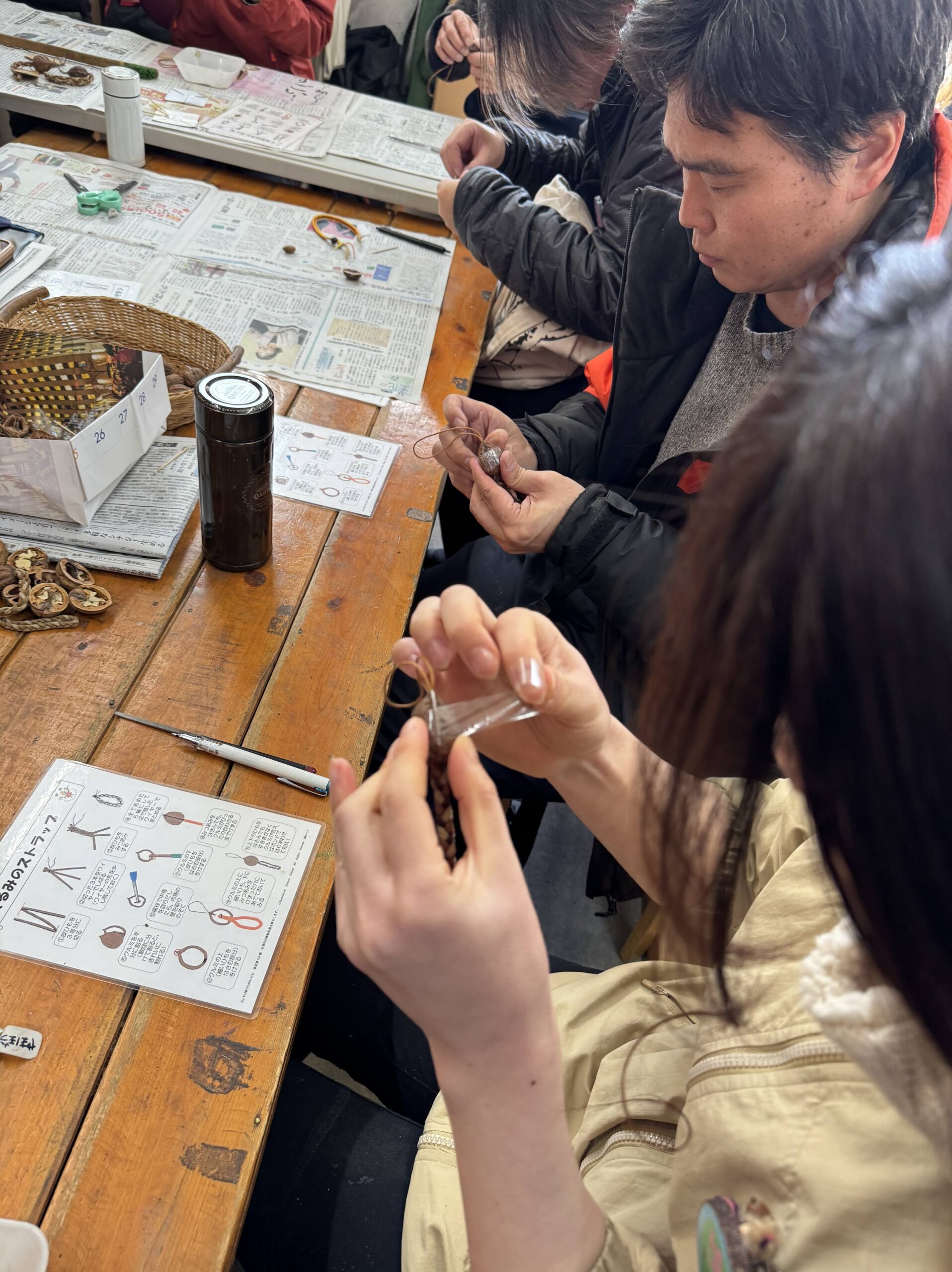 続いてクラフト実習③では道具を多用し、工程の多い「クルミのストラップ作り」に挑戦しました。