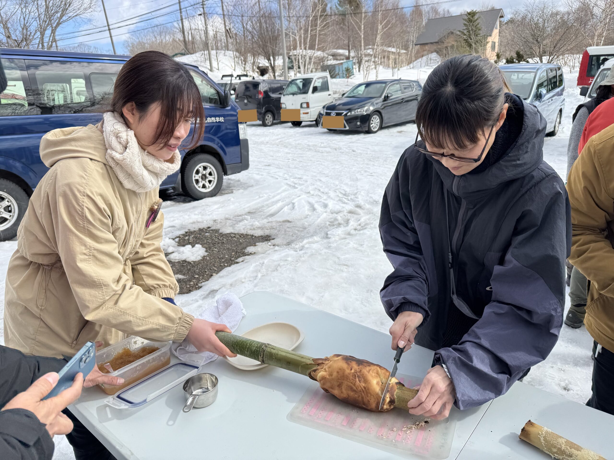 午後はスローフード実習②「青竹クーヘン作り」