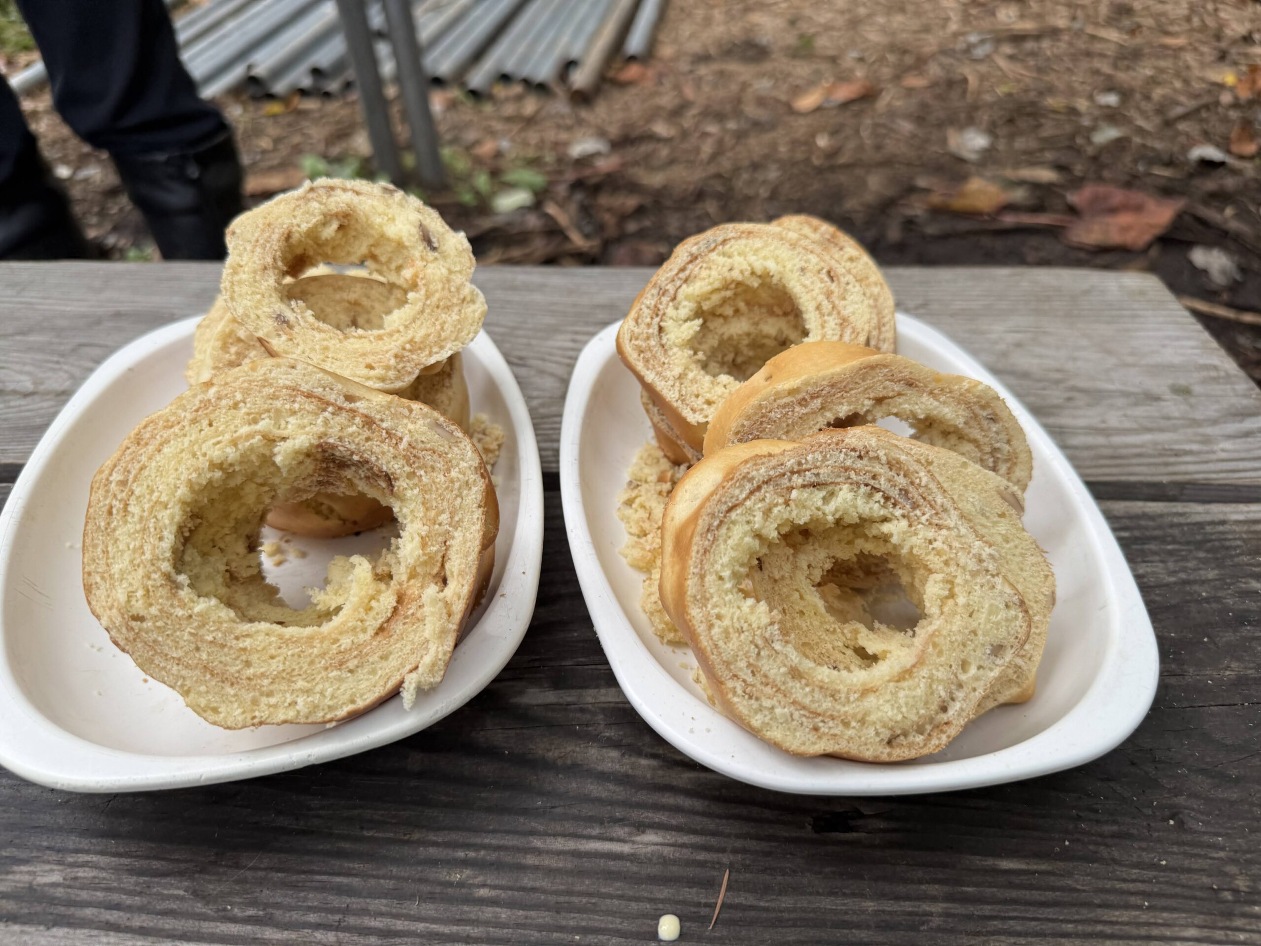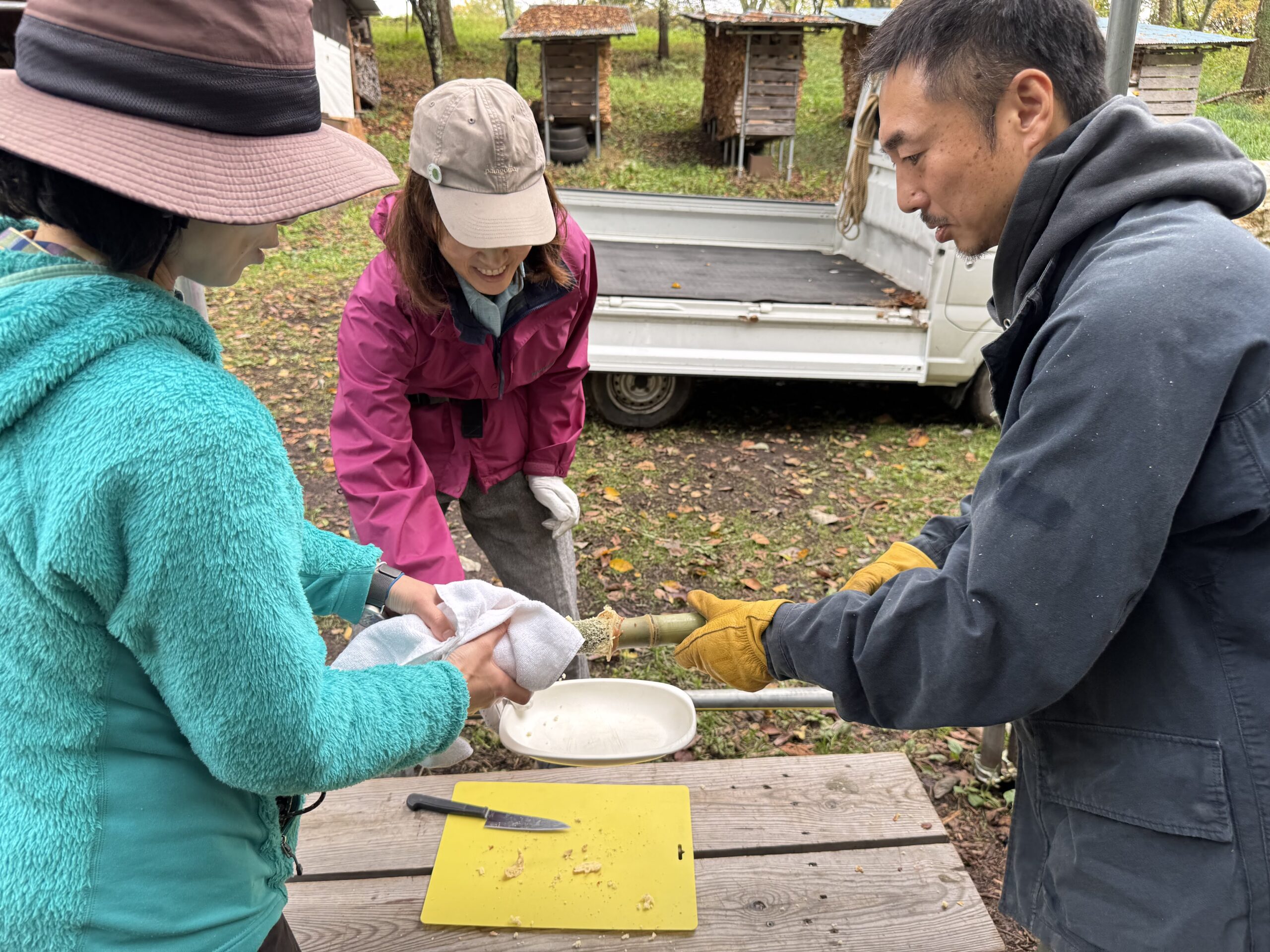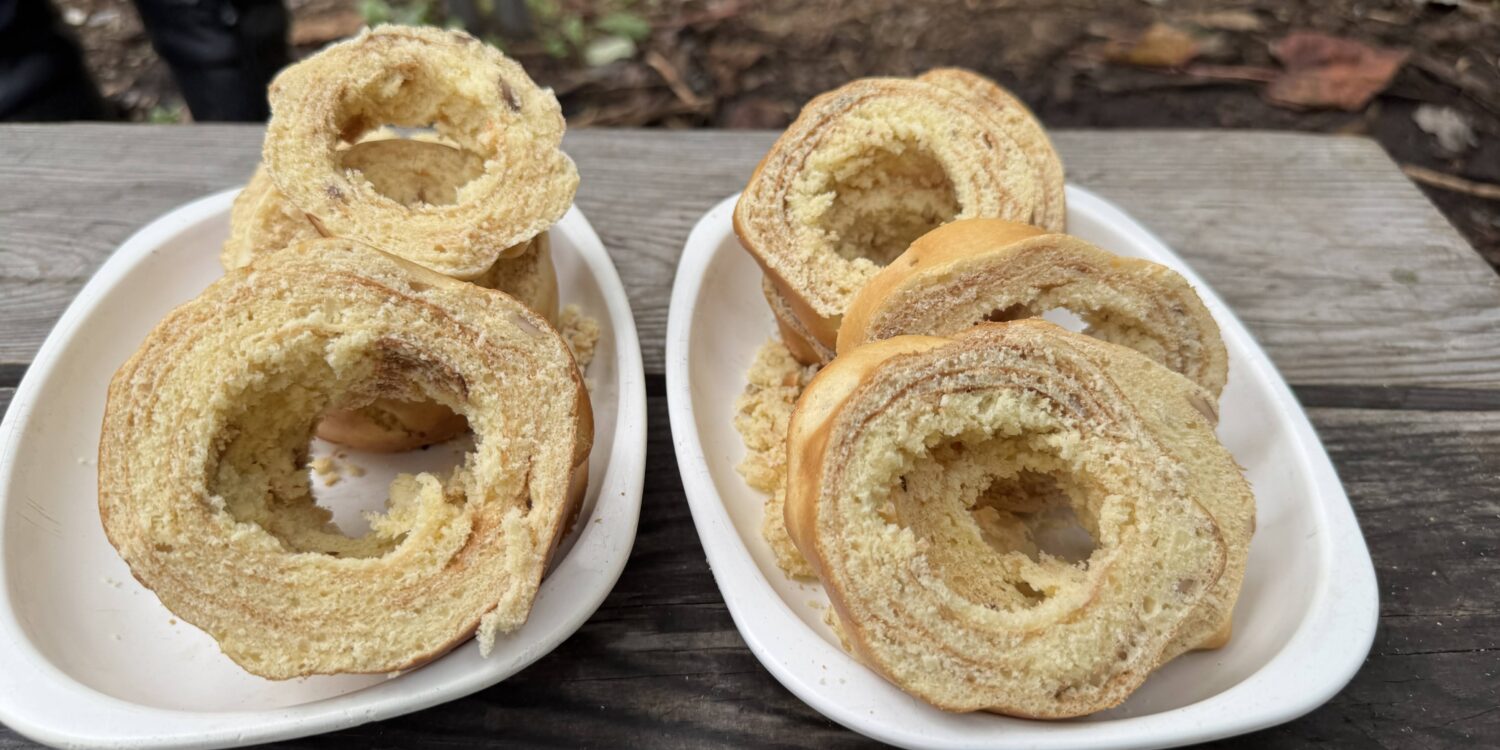 完成した青竹クーヘンでお茶時間。