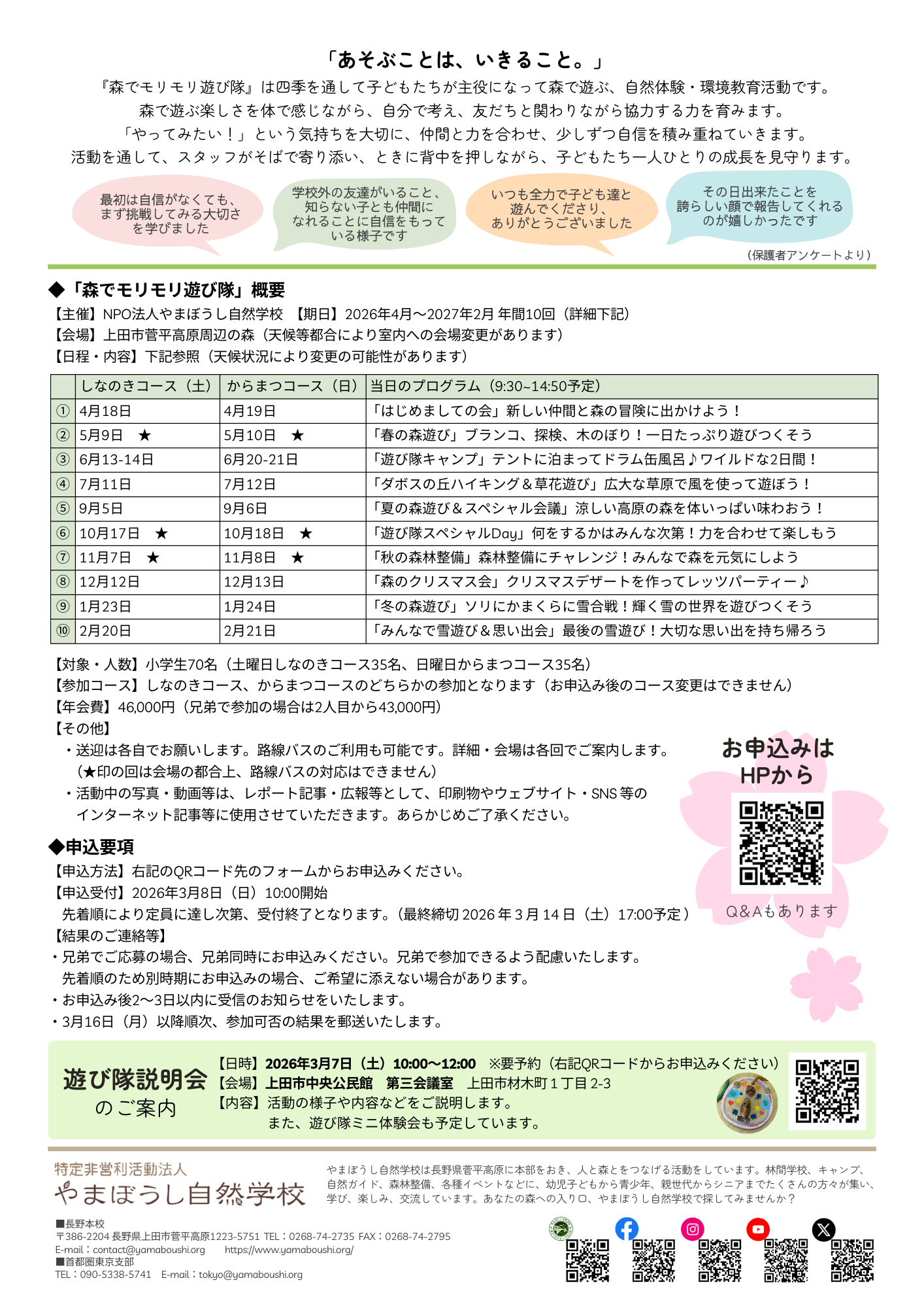 「森でモリモリ遊び隊」概要とお申し込みについて